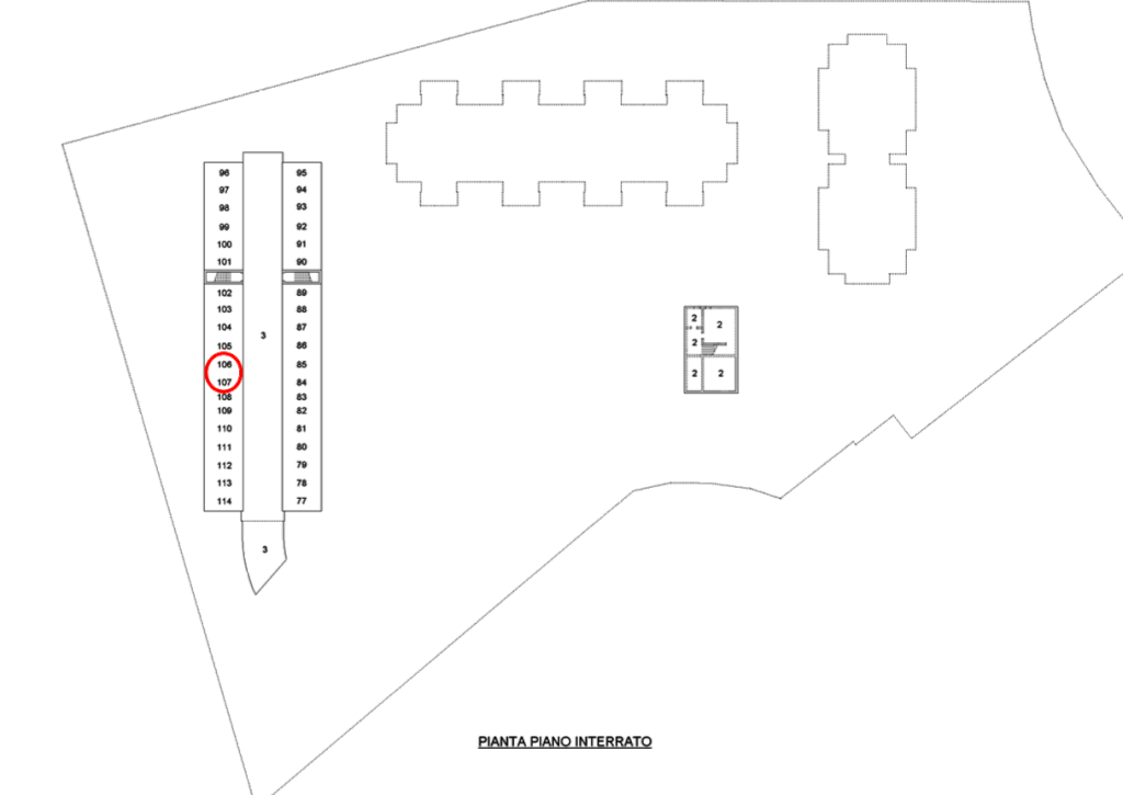 Posto auto ubicato al piano interrato in condominio sviluppato su due piani fuori terra e piccolo scoperto di proprietà situato a Caorle (VE) in viale dei Gabbiani.