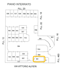 Trattasi di posto auto coperto situato al piano seminterrato, in via Vittorio Alfieri a Firenze (FI), con accesso tramite rampa comune ad altre unità immobiliari. Superficie pari a 19,30 mq.
