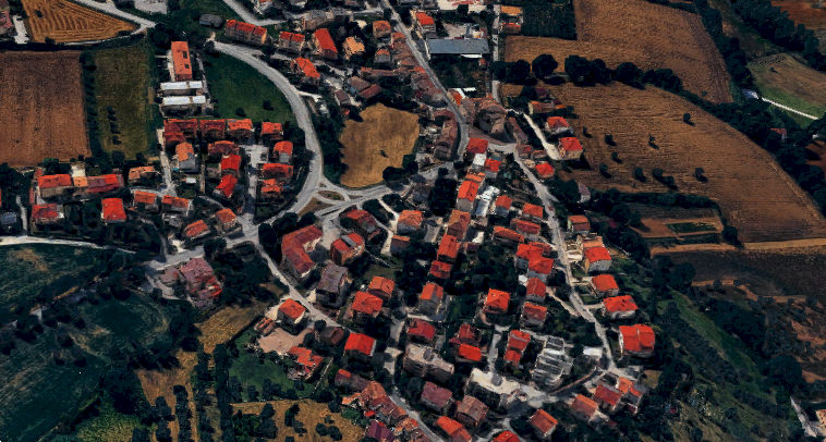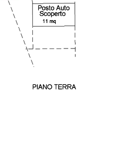 Posto auto della superficie commerciale di 3,30 mq, al piano terra, al centro di altri due posti auto pertinenziali alle unità residenziali del piano primo di un edificio adiacente.