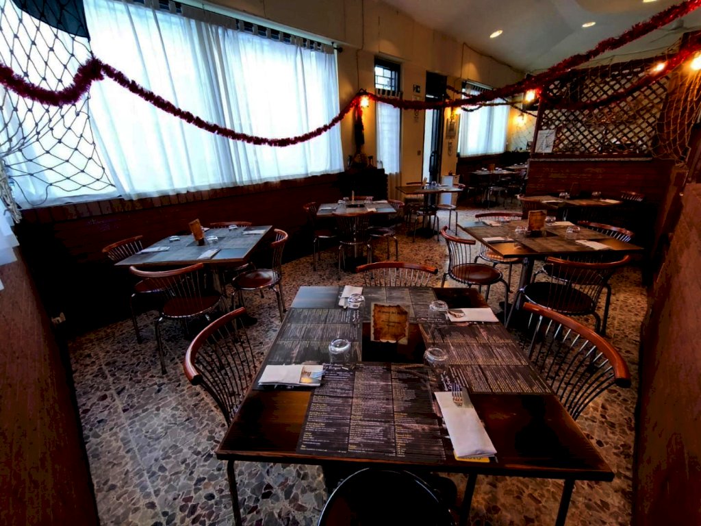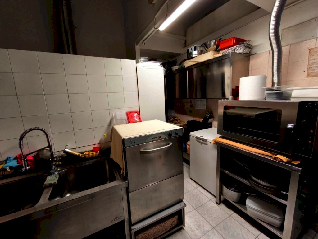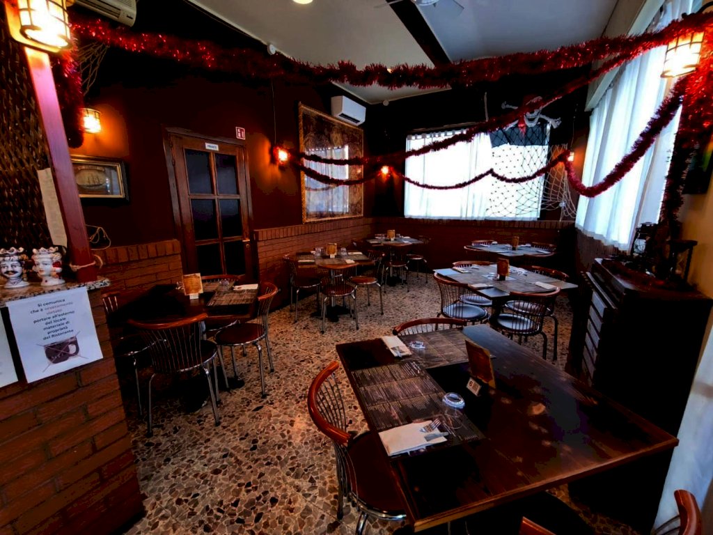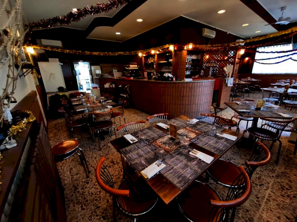 L’attività si svolge in locale angolare di 87 mq totali con 4 vetrine fronte strada, 40 posti a sedere circa, cucina, angolo pizzeria con forno a legna servizio igienico, magazzino e cantina.