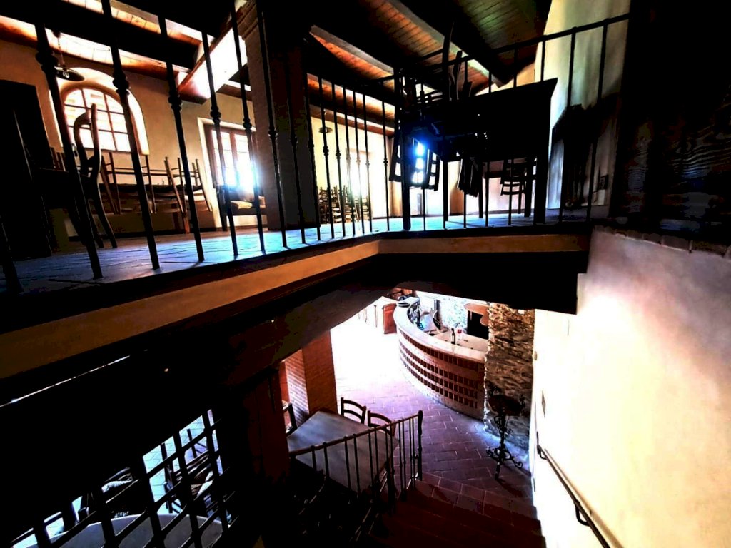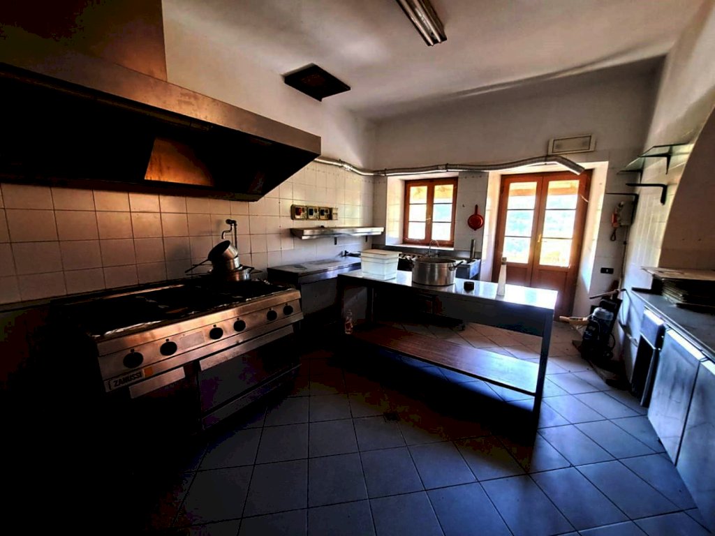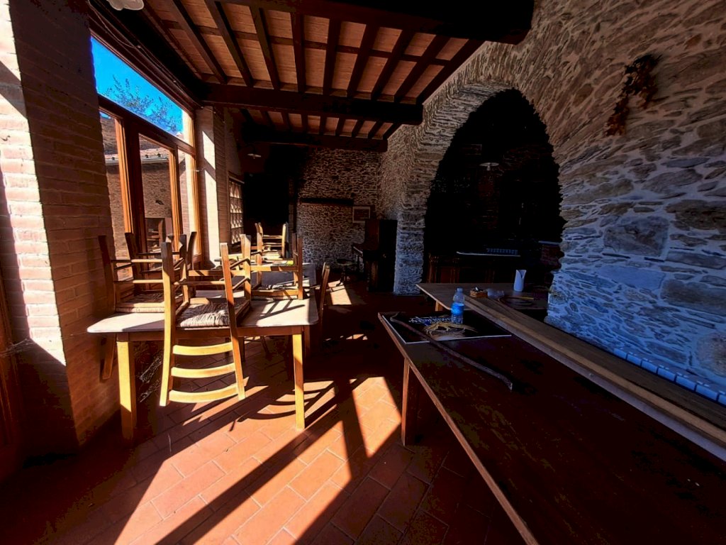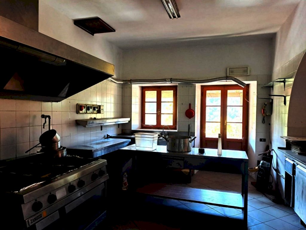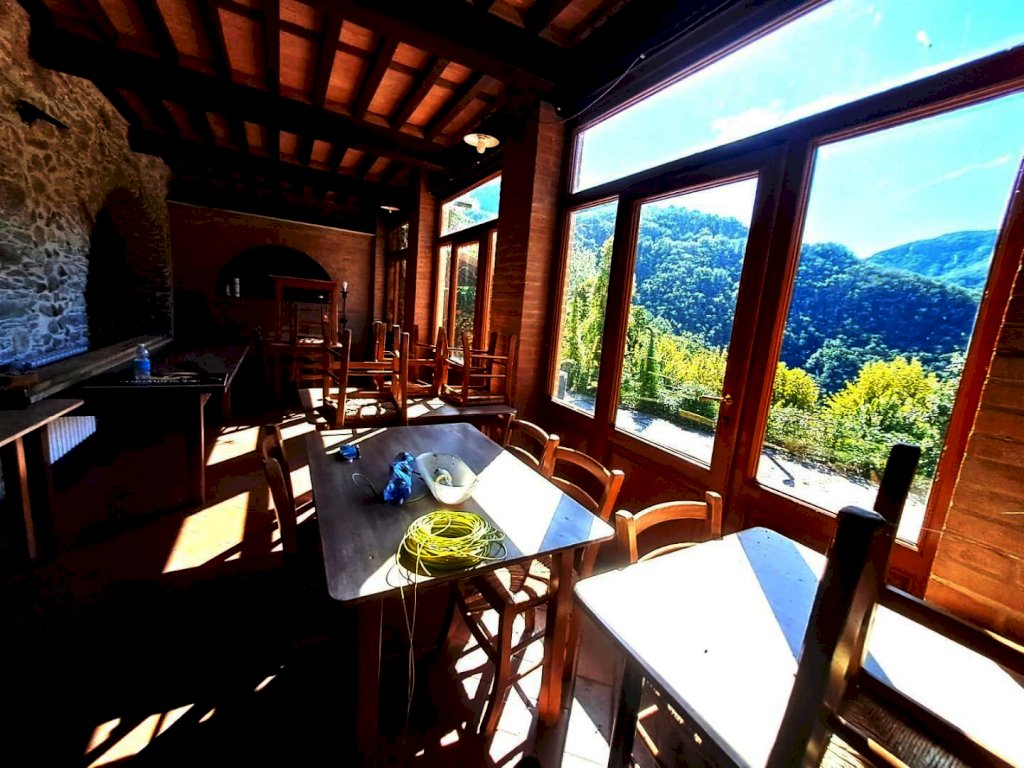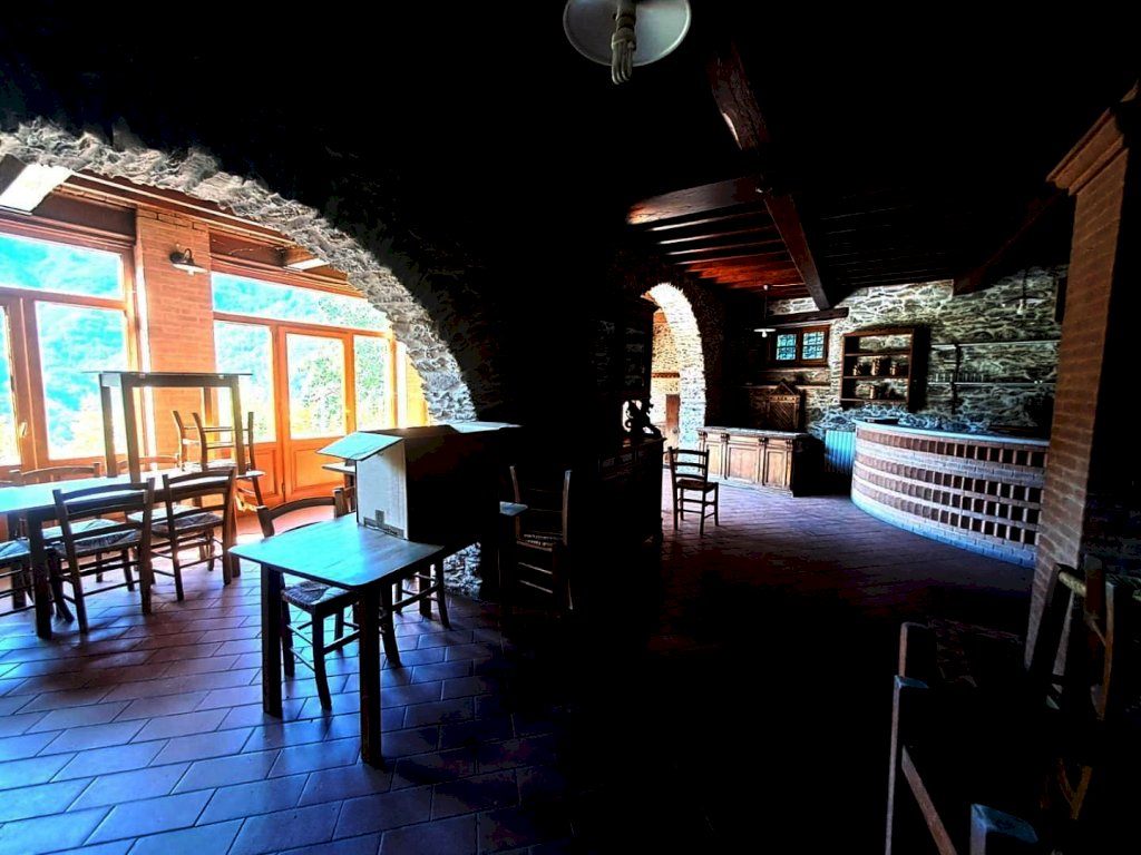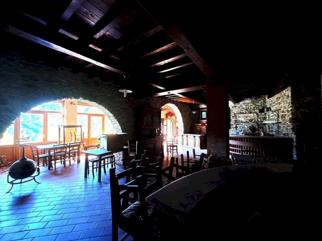 ALTA VERSILIA ZONA COLLINARE Locale uso ristorante-bar. Completamente ristrutturato con travi a vista stile Toscano, open-space composto al piano terra da due ampie sale, area forno a legna, cucina doppia professionale, servizi interni ed esterni, al piano superiore altro salone con terrazza loggiato. Area parcheggio riservata. Completa la proprietà appartamento attiguo con ingresso indipendente, composto da grande soggiorno con angolo cottura due camere da letto , bagno e loggiato esterno. Possibilità di trasformazione in attività B.&B.