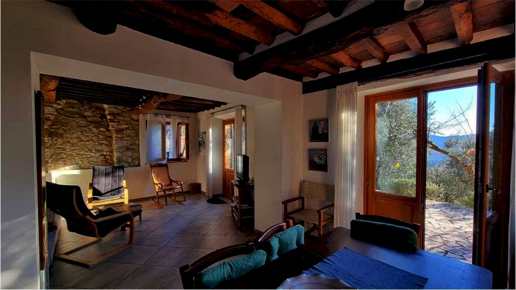 Complesso di due rustici in pietra completamente ristrutturati con piscina e terreno, situato sulle colline del Comune di Borgo a Mozzano in bellissima posizione panoramica immersa nel verde. La proprietà comprende due edifici indipendenti, entrambi corredati da ampia terrazza panoramica e inseriti in un terreno complessivo di circa 1 ettaro, in parte adibito a giardino e uliveto e in piccola parte boschivo. RUSTICO 1: superficie di circa 120 mq disposta su due livelli con la seguente disposizione interna: PIANO TERRA: ingresso, ampio e luminoso soggiorno con zona pranzo, cucina, disimpegno e bagno con doccia. PRIMO PIANO: disimpegno, una camera matrimoniale con accesso all'esterno, due camere doppie, bagno con doccia e bagno di servizio. RUSTICO 2 (EX-FIENILE): superficie utile di circa 102 mq, disposto su due livelli con la seguente disposizione interna: PIANO TERRA: ingresso, camera matrimoniale, camera doppia, bagno e ripostiglio con accesso dall'esterno. PRIMO PIANO: ampio e luminoso soggiorno in stile toscano con zona pranzo, cucina abitabile con ingresso secondario dalla terrazza e bagno. La proprietà è corredata da circa 1 ettaro di terreno, in parte adibito a giardino e uliveto e in piccola parte boschivo, dove è stata realizzata una piscina con solarium e bellissimo panorama sulla valle e sulle colline circostanti. Entrambi gli immobili dispongono inoltre di ampie terrazze panoramiche e spazi esterni esclusivi con area parcheggio. I due fabbricati sono stati recentemente ristrutturati con particolare attenzione all'efficienza energetica e presentano le stesse caratteristiche impiantistiche: impianto di riscaldamento a pavimento con pompa di calore, impianto fotovoltaico, infissi con doppi vetri e zanzariere. Gli immobili sono in classe energetica B. Sono stati mantenuti gli elementi tipici dello stile tradizionale toscano, come facciate in pietra, travi in legno di castagno e mezzane in cotto. La proprietà è da anni inserita con successo nel mercato degli affitti turistici, garantendo ottimi rendimenti. Grazie alla presenza dei due edifici indipendenti rappresenta un ottimo investimento oppure una soluzione ideale come casa vacanze per due nuclei familiari o gruppi di amici che desiderano condividere la stessa proprietà mantenendo spazi indipendenti. Distanze: Lucca 16 km, Pisa 37 km, Firenze 70 km, Versilia (mare) 38 km, Abetone (piste da sci) 55 km.