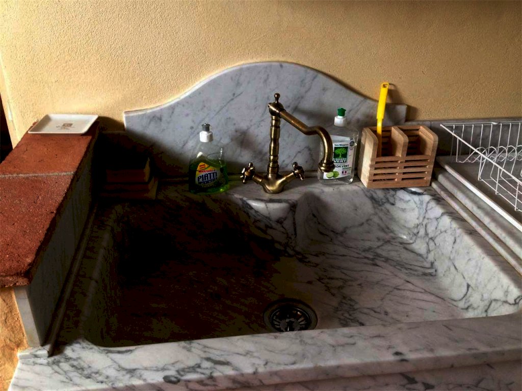 La struttura è composta da: ampio giardino ben curato, ingresso residence, salone, soggiorno con forno a legna e caminetto, cucina abitabile in muratura, locale lavanderia, bagno.