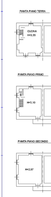 A, L'abitazione è composta al piano terra da locale cucina - pranzo e scala interna, al piano primo da camera con bagno e al piano secondo locale sottotetto.