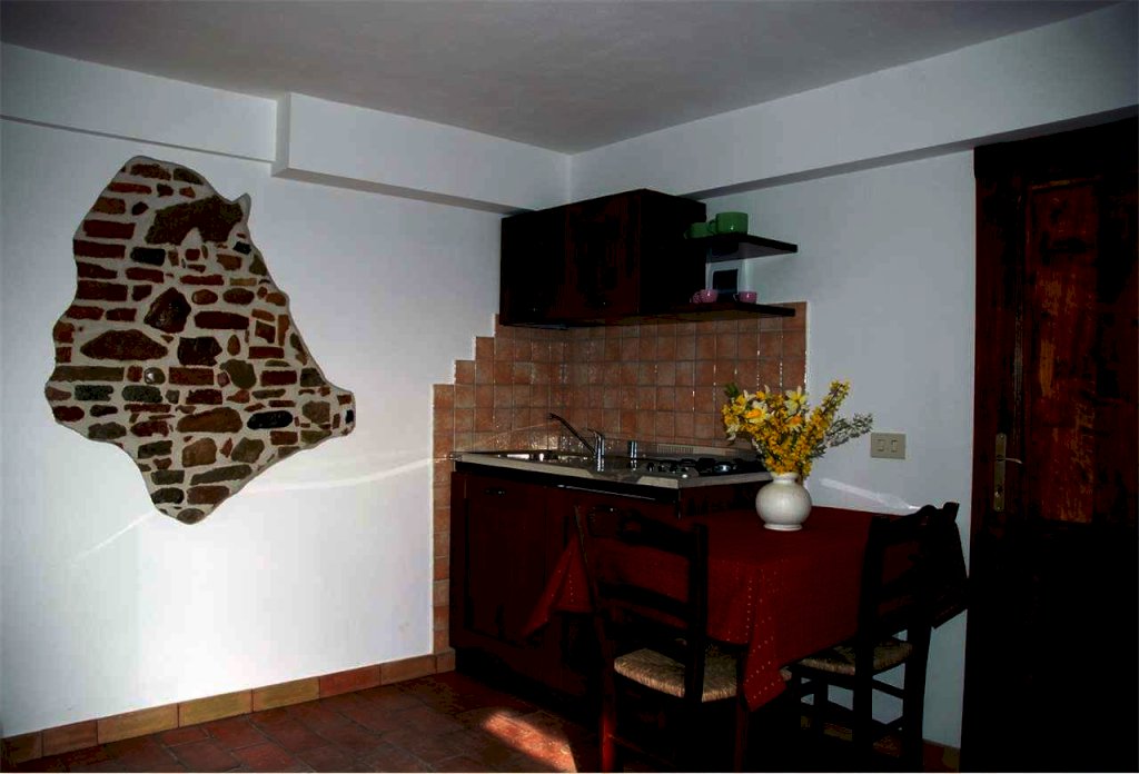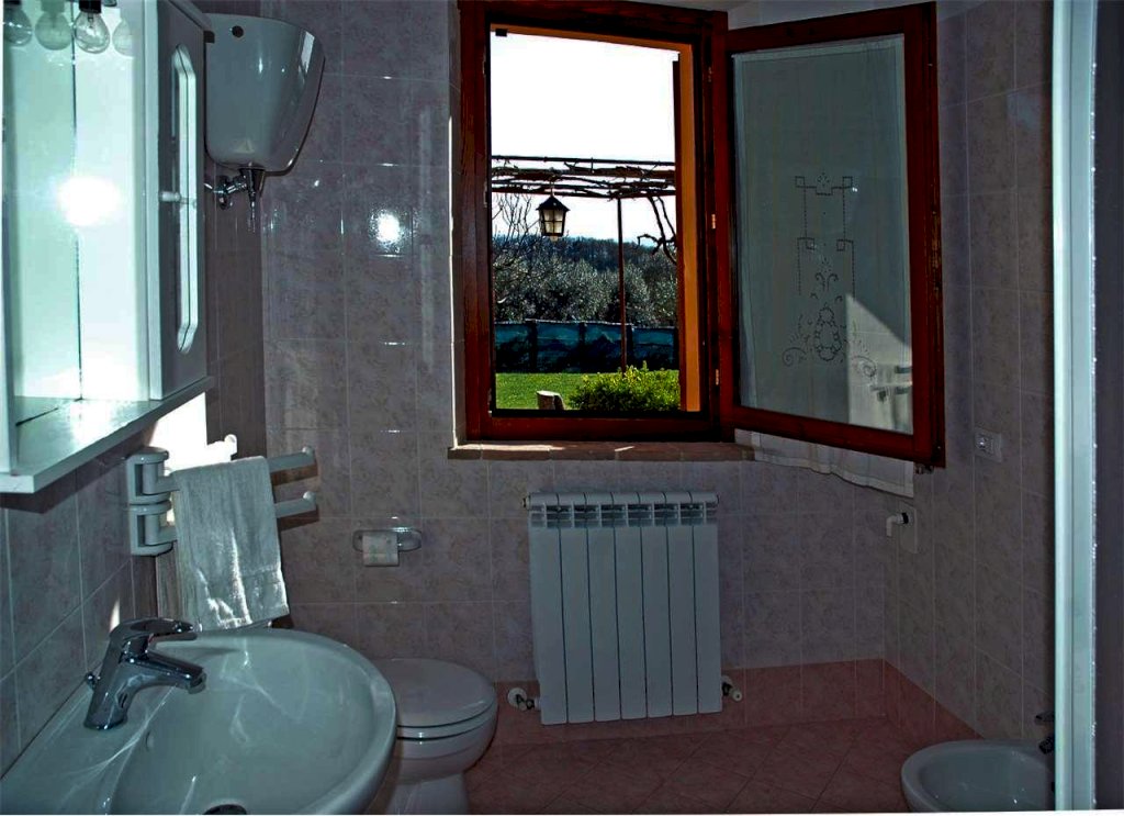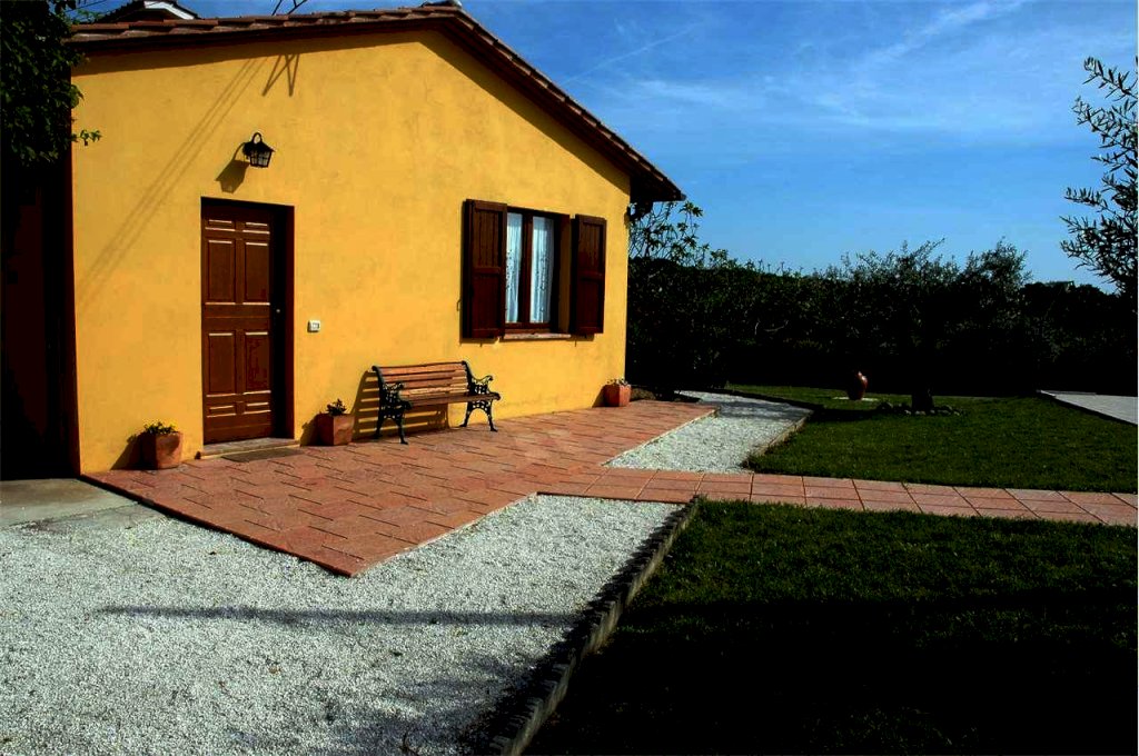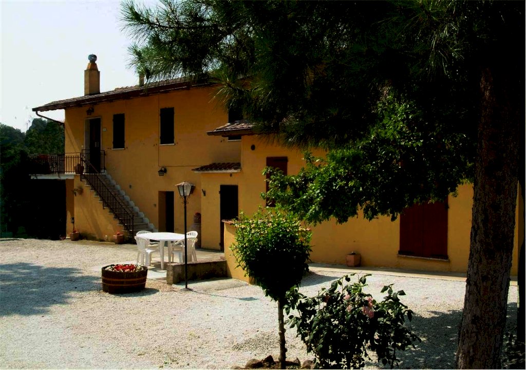 All'esterno ha una corte di 1500 mq completamente recintata, adibita quasi tutta a giardino, molto curato, con un pozzo barbecue murato e piscina con solarium. Completano la proprietà una fonte di acqua potabile collegata al casale in grado di soddisfare tutte le sue esigenze e 128 metri cubi di possibilità edificatoria per ampliamento.