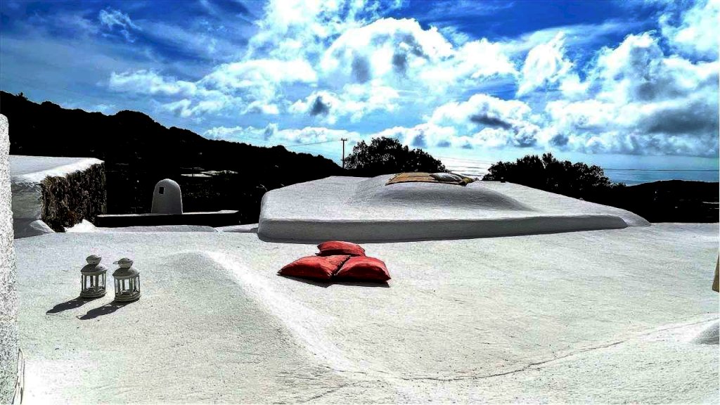 Un meraviglioso ampio terrazzo si estende dalla parte cannizzata, a ridosso dell'ingresso del dammuso, fin sopra le cupole del garage e di altri vani posizionati su un livello più basso. Da qui potersi godere i tramonti oppure un semplice quanto unico cielo stellato vi conquisterà soprattutto se accompagnato da un calice di vino o un bicchiere di passito.