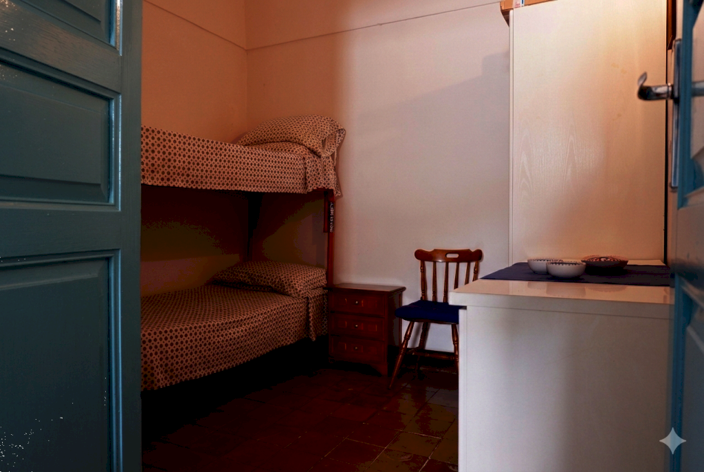 Al suo interno come nella maggior parte dei dammusi antichi, troviamo una sala centrale meglio utilizzata come soggiorno, dal quale si accede ad una prima camera da letto (camerino); sulla destra la tipica zona notte padronale composta da una sala con alcova che ospita il letto matrimoniale ed il camerino (stanza anticamente utilizzata come dormitorio per i bambini o come guardaroba); sempre da soggiorno sulla sinistra troviamo la cucina e da qui attraverso un piccolo disimpegno raggiungiamo la 3 camera da letto ed il bagno. il secondo bagnetto ha invece accesso dall'esterno.