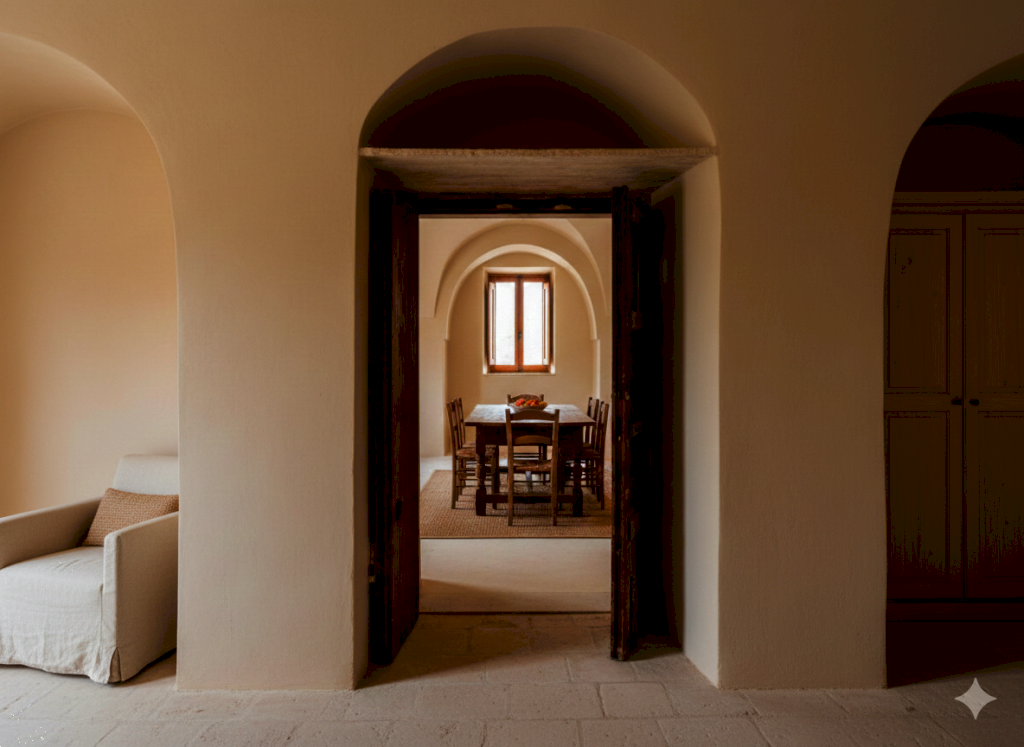 Il dammuso si compone di una grande sala con alcova e camerino oltre a due piccole alcovette frontali, un ingresso soggiorno ed una vecchia cucina con i classici "furniddri", inoltre dispone di una vecchia cantina che potrebbe diventare una cucina durante le opere di ristrutturazione o una camera per gli ospiti. Lo spazio esterno attorno al dammuso lascia prevedere la possibilità di ricavare due terrazze, una sulla campagna circostante e sul mare .