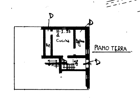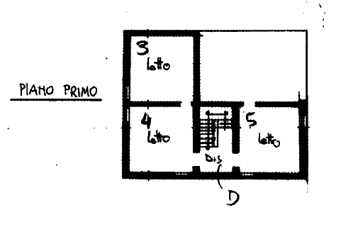 - Seconda unità: al piano terra ingresso con vano scala, ex cucina con sottoscala, una camera e ripostiglio/cantina; al primo piano disimpegno e tre camere.