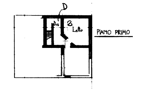 - Seconda unità: al piano terra ingresso con vano scala, ex cucina con sottoscala, una camera e ripostiglio/cantina; al primo piano disimpegno e tre camere.