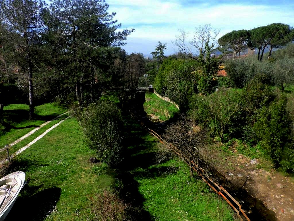 Calci proponiamo in vendita un affascinante rustico ricavato da vecchio mulino adagiato in una lussureggiante verde lingua di terreno di 6000mq con alberi da frutto ed olivi e attraversato da un musicale piccolo ruscello. Il casolare, catastalmente composto da due unità immobiliari distribuite su più livelli sfalzati, per una superficie commerciale ben oltre i 400mq é stato acquistato dagli attuali proprietari negli anni 80 che lo hanno solo in parte riorganizzato, cercando di salvaguardarne la natura e le strutture principali. L' attuale composizione comprende al piano appena sotto il livello stradale, un ambiente principale di 60mq dove é ancora presente la vecchia pietra molina di macinatura, oltre a altre due stanze, bagnetto e locale tecnico. Al piano terra è presente un ingresso principale, un' ampia cucina, salone con camino e studio. Per mezzo di una doppia rampa di scale si raggiunge poi il piano primo dove sono presenti quattro camere da letto di varia metrature oltre ad un bagno. Da questo piano infine si raggiunge la panoramica altana attualmente al grezzo.