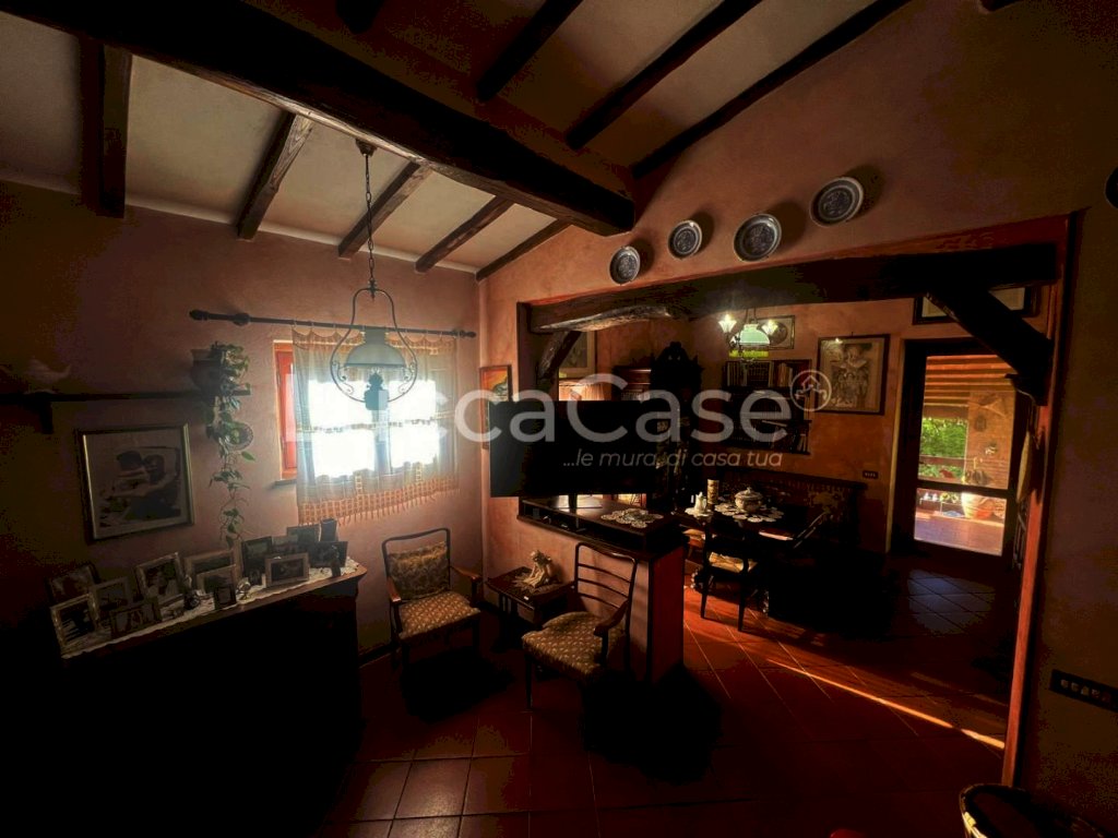 Il rustico è disposto su due livelli e suddiviso in due distinte unità abitative ristrutturate mantenendo le tradizioni rurali del luogo con riscaldamento a legna , essendo presenti tre camini e GPL. La proprietà è accessibile attraverso un ingresso carrabile privato, percorrendo la stradina di proprietà che conduce al fabbricato si può godere di una splendida vista caratterizzata dall’uliveto che caratterizza il terreno circostante la proprietà con circa 200 piante di olivo. Arrivati in cima alla strada troviamo uno spazio pavimentato in parte coperto da tettoia da utilizzare come parcheggio, poco distante l’ingresso da scale esterne del primo appartamento, composto da: ingresso/soggiorno con camino termico, cucina abitabile, a e bagno provvisto di doccia; salendo le scale al primo piano, abbiamo la zona notte composta da due camere matrimoniali, conclude l’appartamento una terrazza assolata con vista panoramica.