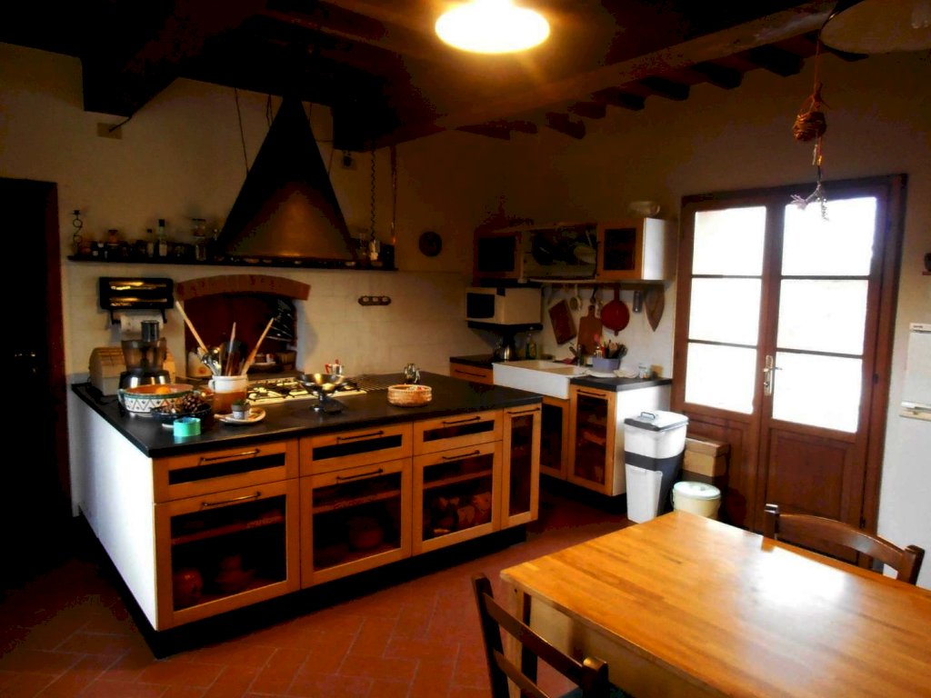 Lari - Casciana Terme Lari Rustico in vendita Casa colonica - 9 vani-350 mq in luogo panoramico, interamente ristrutturato, nove ampi locali tutti con pavimenti in cotto e travi a vista cosi suddivisi: piano terra cucina abitabile con portico, salone, bagno e ripostiglio: primo piano grande stanza con camino, tre camere e bagni: al piano secondo una grande stanza tipo altana,ri