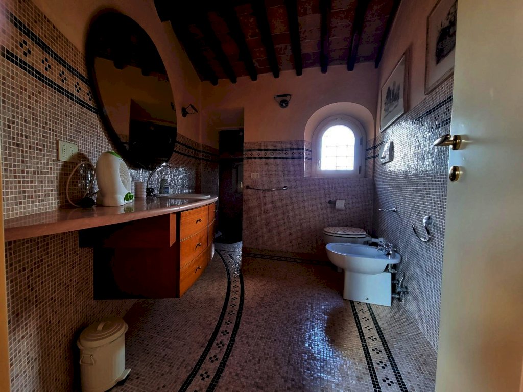 Casciana Terme Lari- In posizione collinare, dominante e molto residenziale, vendesi bellissima proprietà rustica composta da tre corpi principali, di cui la casa di circa mq 160, un annesso ristrutturato con cucina e forno a legna con adiacente bella sala da pranzo, ed una suggestiva antica chiesa etrusca; il tutto corredato da ampio garage a se stante di circa mq 40 ed un terreno pertinenziale di circa 16.000 mq tutto recintato con bellissimi vialetti in pietra che ci accompagnano sia alla piscina, sia allo stiloso bar esterno con cantinetta, sia al barbecue esterno o alle piantumazioni in genere.