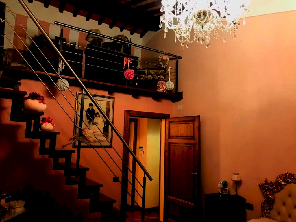 Dalla scala molto luminosa, originale in pietra serena si accede al primo piano,troviamo il reparto notte con parquet, composto da quattro camere matrimoniali tutte con soppalco, bagno con finestra,doccia e vasca.