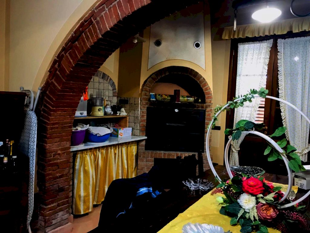 Il rustico ci accoglie al suo interno da ampio ingresso in grande soggiorno con grandi aperture ad archi,cucina abitabile anche questa di grande metratura , forno in muratura e soffitti a volte. Al piano terra inoltre è presente antibagno e bagno con doccia, una grande sala con camino funzionante.