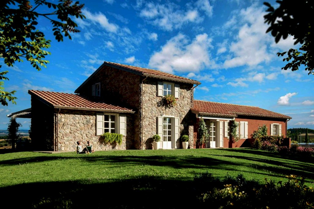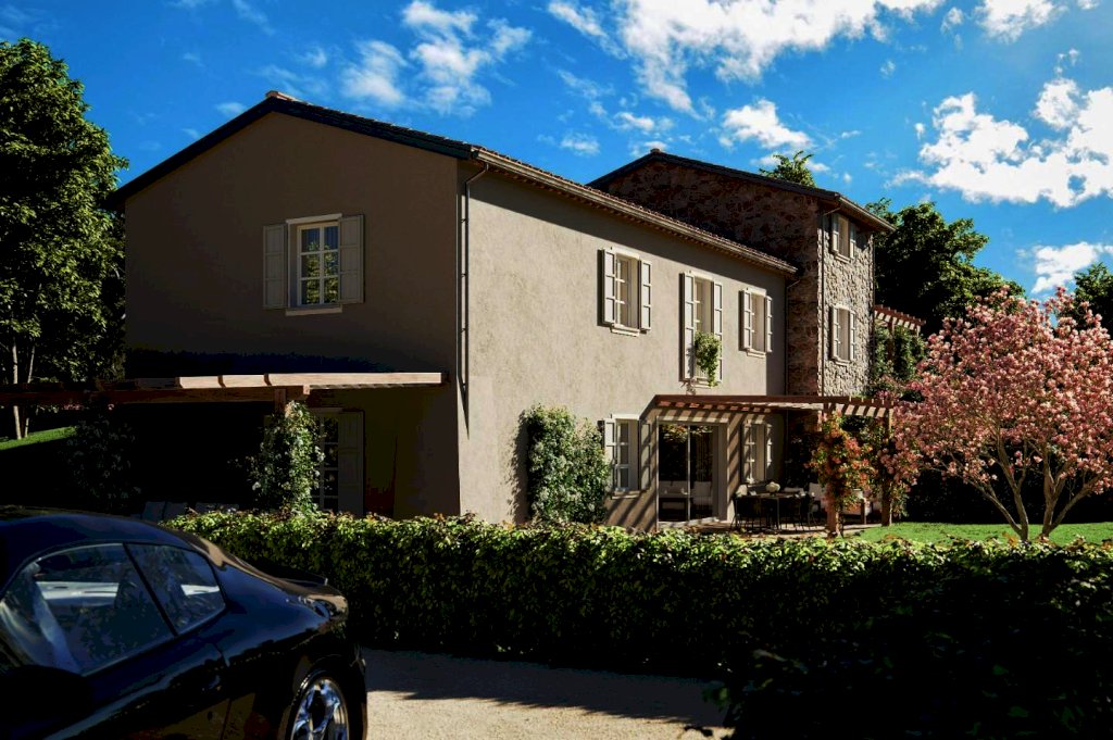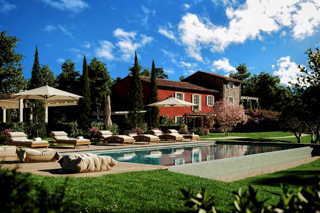 Nella sintensi la proprietà si sviluppa su di un colle con vista sulle colline con un podere che si sviluppa per circa 2 ettari, il rustico di lusso sarà sviluppato com'èra la struttura originaria costituito da tre blocchi ed elevata in parte su di un piano e in parte su due piani oltre al piano secondo.