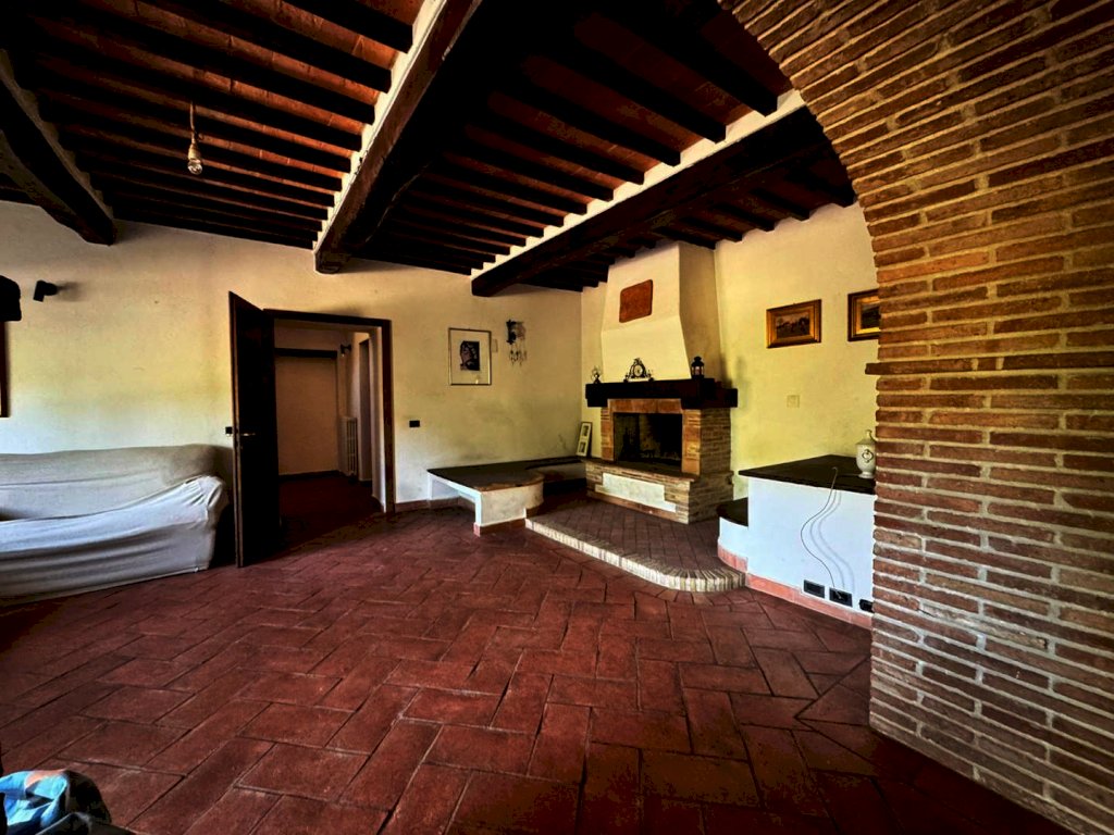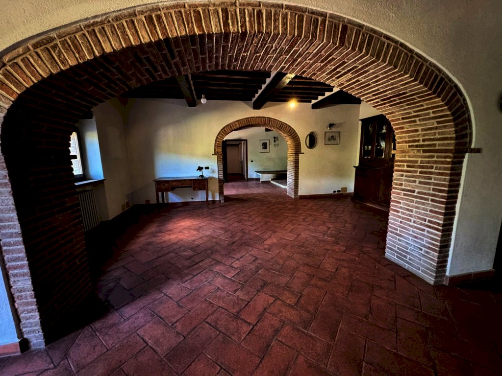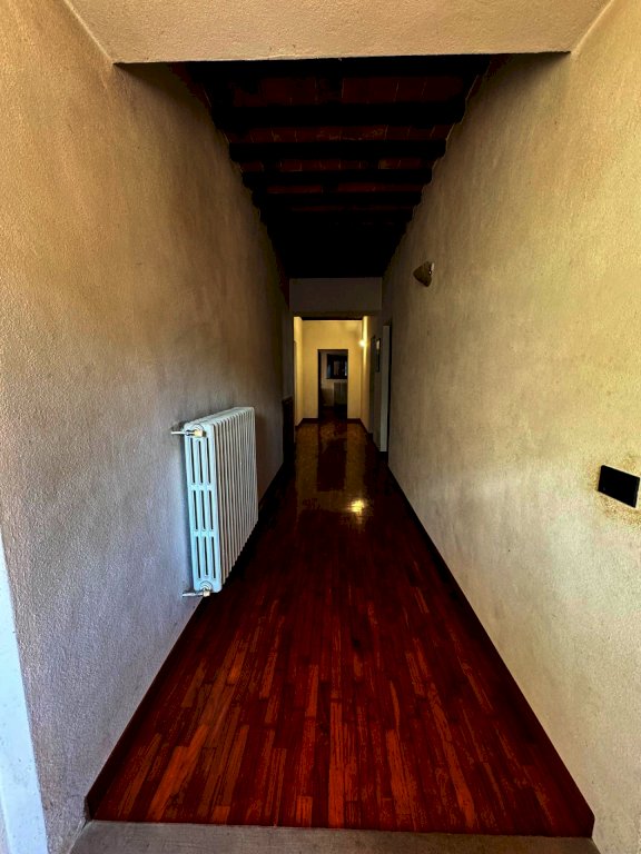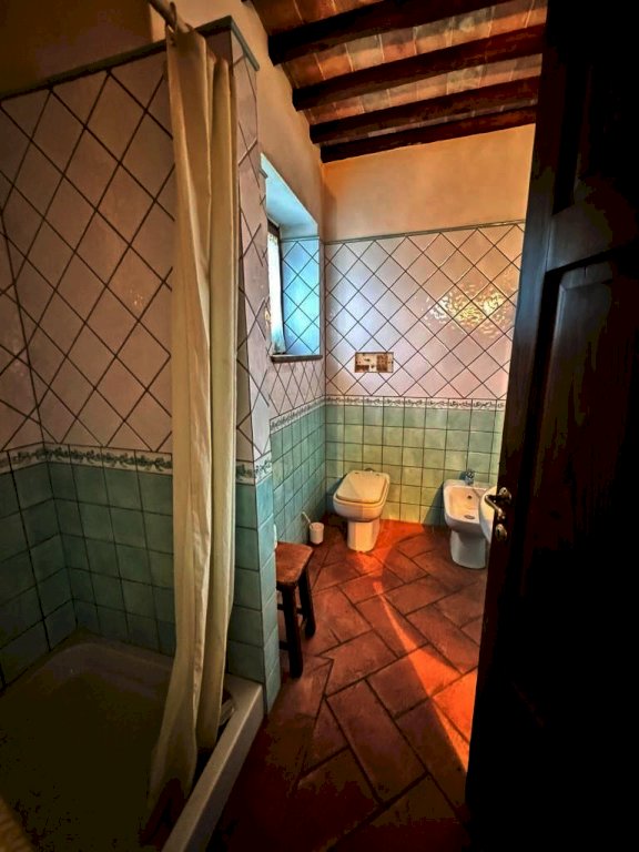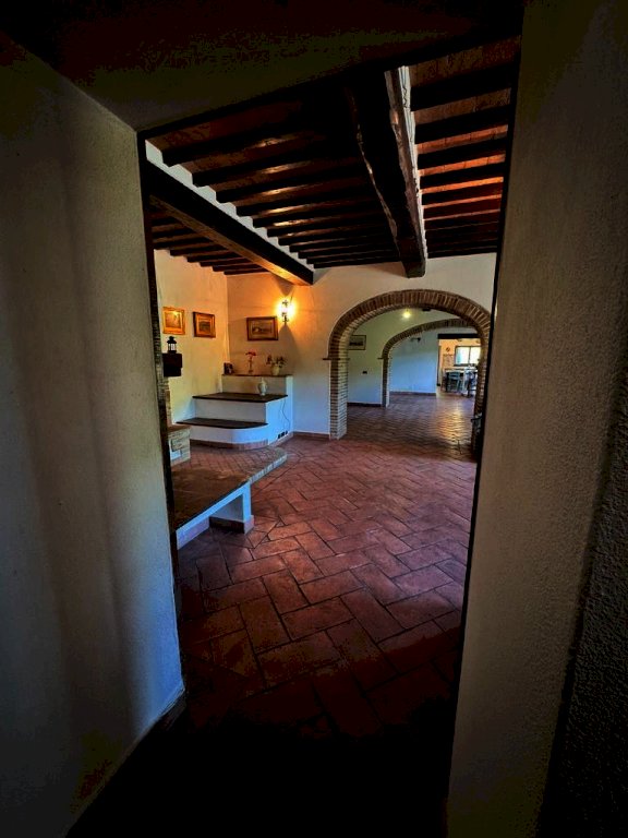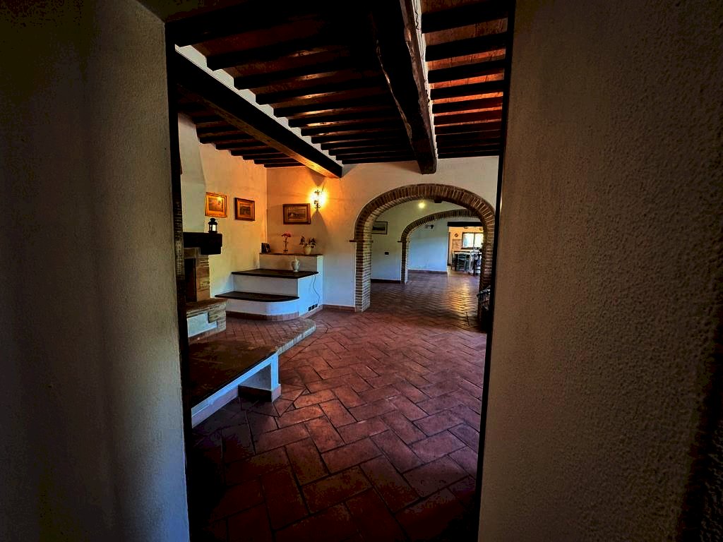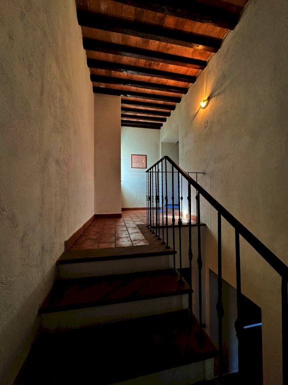 Suddivisa su più livelli, cosi composto: al piano terra un ampio ingresso, cucina abitabile, doppio soggiorno diviso da un bellissimo arco a mattoni impreziosito da un imponente camino in pietra, bagno, lavanderia e ripostiglio (rifiniture con pavimento pavimento in cotto dell’impruneta)