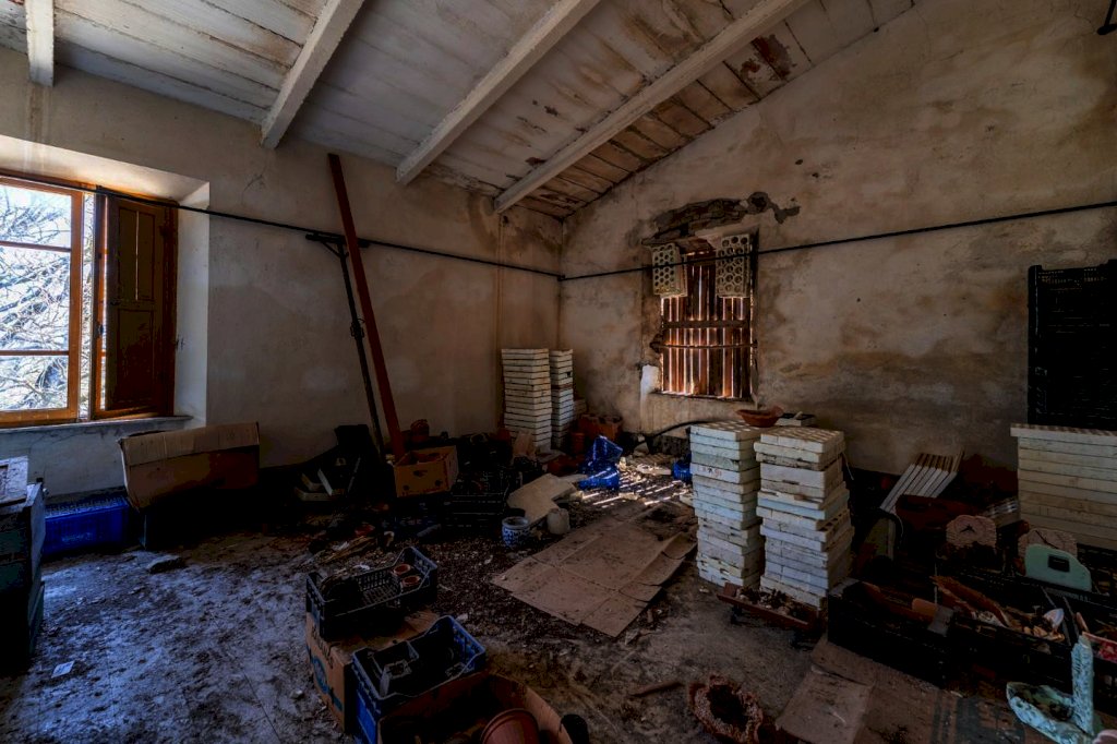 metres arranged on two levels, to be restored. The property, surrounded by 8,000 square metres of land, is ideal for those who dream of a house immersed in nature, with large outdoor spaces and the possibility of creating a private residence, a farmhouse or a second