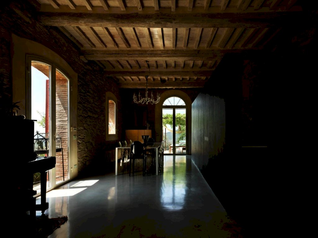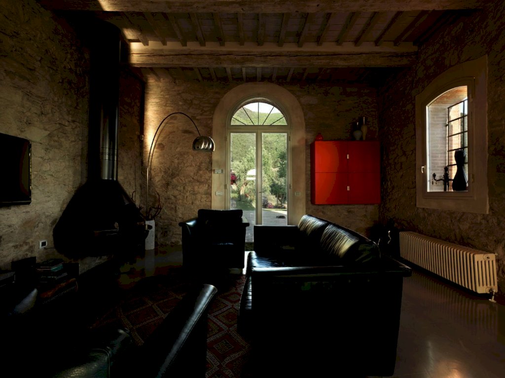 Le carattestiche che rendono ammirabile la proprietà sono le pareti in pietra, il cotto originale nella zona notte, le antiche travi in legno a soffitto e la spendida vista panoramiche che spazia dai verdi monti pisani fino al mare.