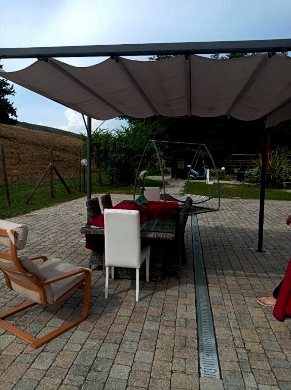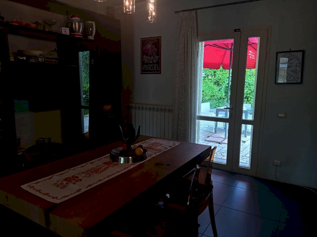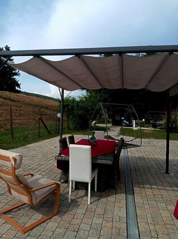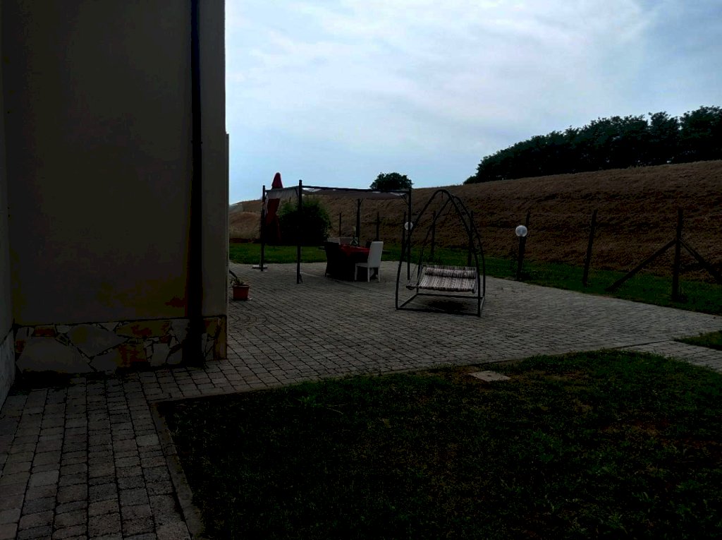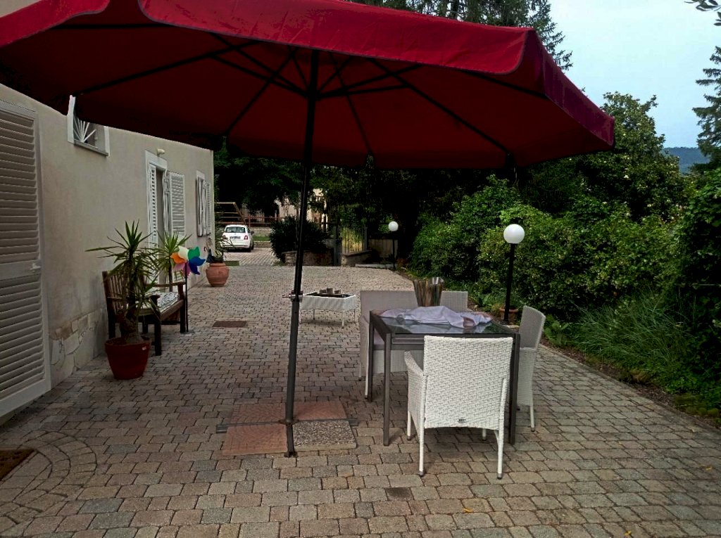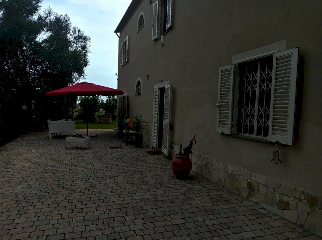 Completano la proprietà il giardino su quattro lati di circa 1000 mq con un forno in muratura, un pozzo artesiano , un barbecue, un grande parcheggio con più di 10 posti auto, due casette legno e un frutteto di 4740 mq adiacente alla proprietà .