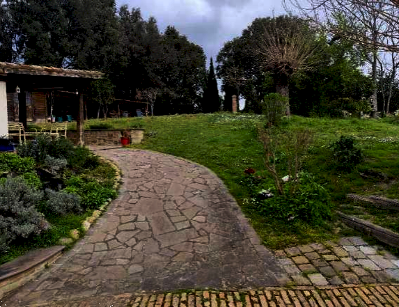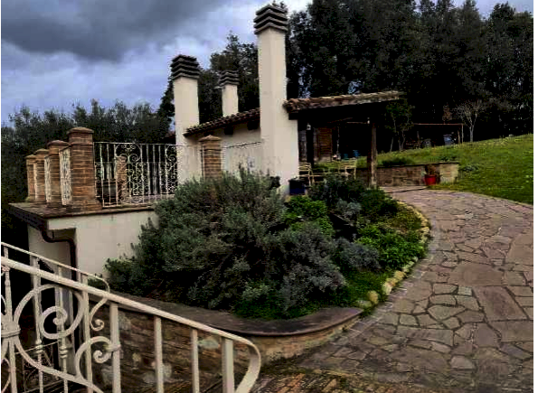 La proprietà comprende inoltre terreni agricoli: una porzione sistemata a terrazzamenti con circa 40 ulivi sparsi e una parte ad orto; un ulteriore terreno in pendenza, privo di recinzioni, con circa 60 ulivi disposti in filari; e un'altra area dove i proprietari hanno realizzato una tartufaia completamente recintata, che, secondo quanto riferito dalla proprietà, ospita le varietà di estivum, carpinum bianco, scorzone, nocciolo nero e pregiato nero roverella.
