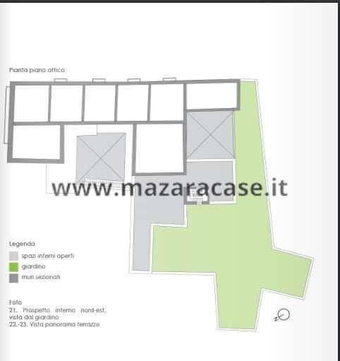 Dal balcone del piano primo si ha il privilegio di partecipare attivamente ai numerosi eventi che si svolgono in Piazza della Repubblica. Dal terrazzo del piano attico il panorama si estende dalla foce del fiume Mazaro, con il suo porto antico, alle cupole della Cattedrale . Il piano attico, raggiungibile anche da un ingresso separato (da Via Marco Penna passando per il giardino), potrebbe costituire un' area autonoma dell'immobile.