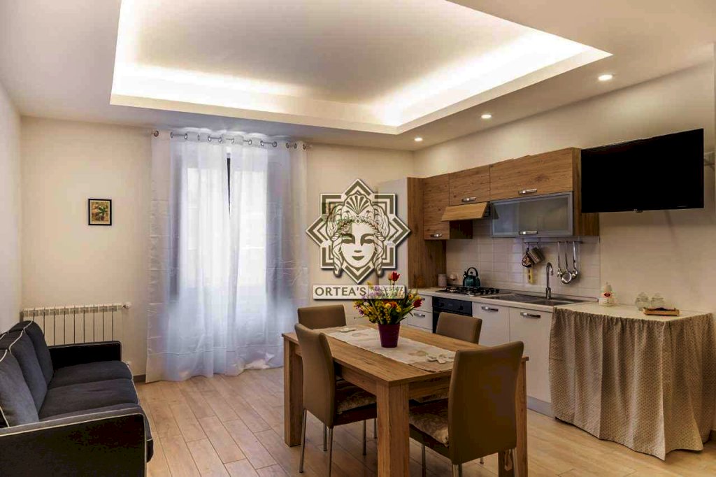 Al piano terra un locale commerciale con grande porta vetrina e con locale bagno, locale che oggi viene utilizzato come un grande locale a servizio di attività ricettiva e comunicante con la scala di accesso ai tre appartamenti bilocale dislocati uno per piano.