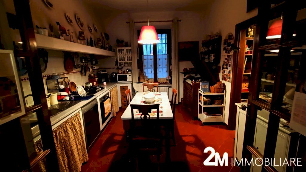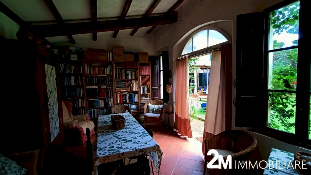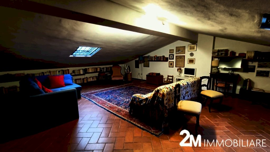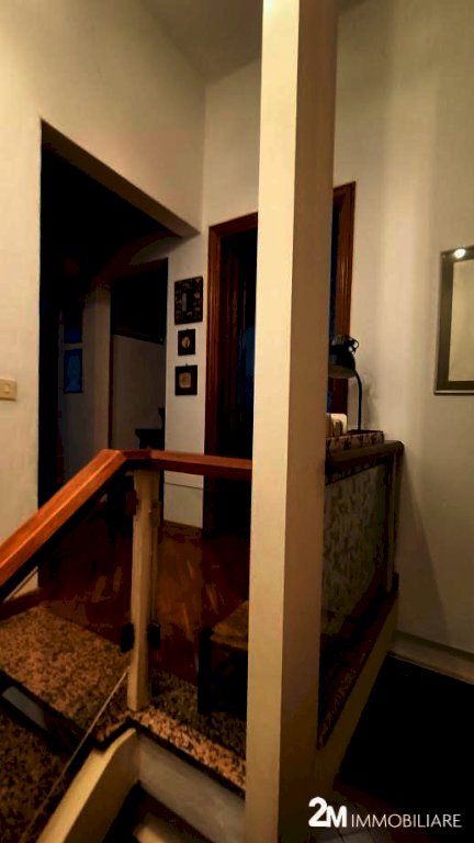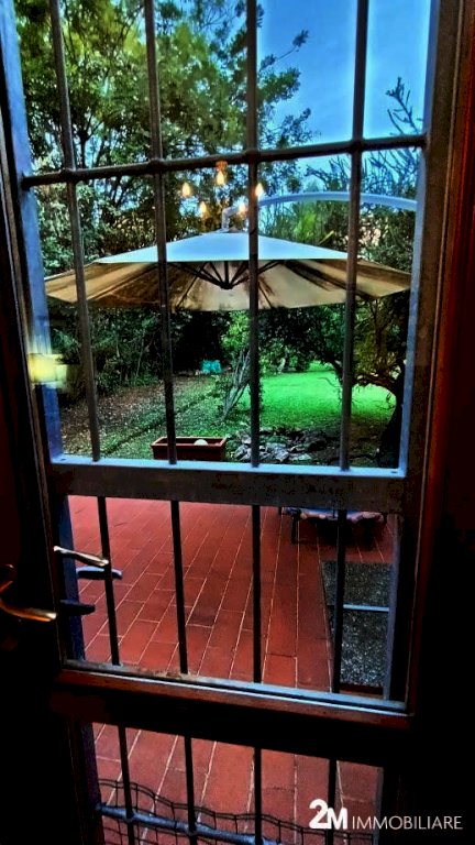 si compone di ampio soggiorno comunicate con il giardino arredato di tettoia e locale di sgombero adibito a studio, la cucina abitabile con vari servizi (ripostigli, wc). Al piano primo 4 camere e due bagni. mentre al piano superiore ampio sottotetto abitabile. UNA GRANDE COMODITA' è che attraverso il giardino della casa si può accedere sia pedonalmente che con bici/moto anche direttamente ad una strada parallela a Corso Italia.