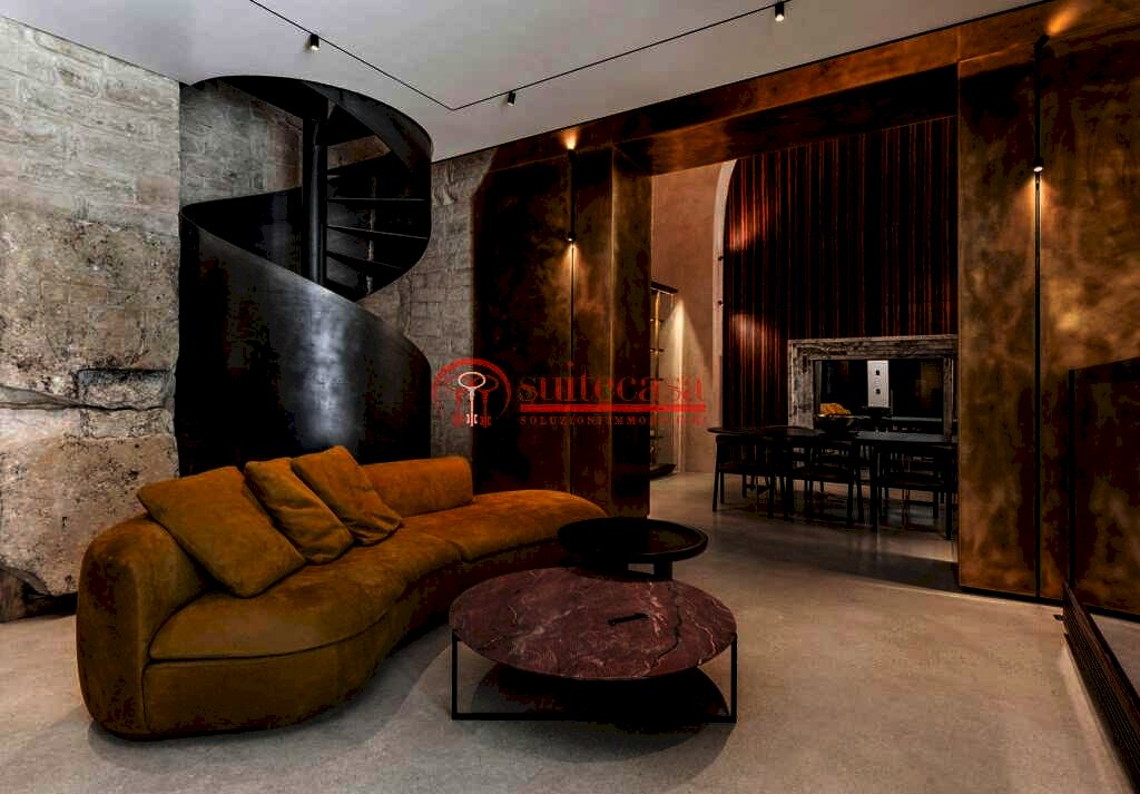 Un'imponente scala in ottone, vera e propria opera d'arte, conduce alla zona notte: un rifugio intimo e sontuoso, concepito per offrire il massimo del comfort e dello stile, in un equilibrio perfetto tra intimità e magnificenza.