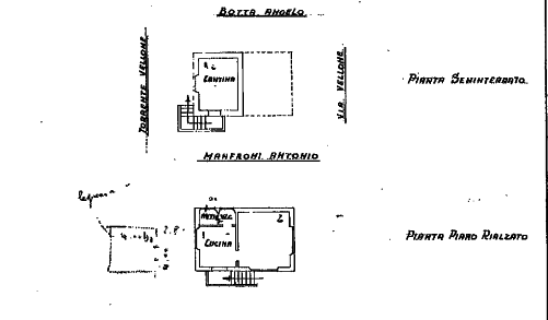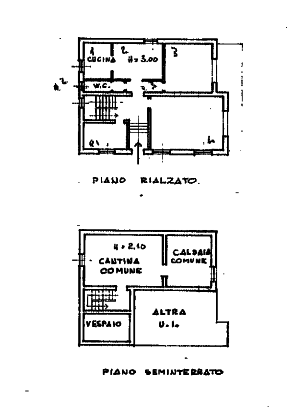 - piccolo edificio ad uso abitazione su due piani; uno rialzato ad uso abitazione ed uno seminterrato con accesso dall'esterno adibito a vespaio; attiguo edificio monopiano ad uso legnaia.