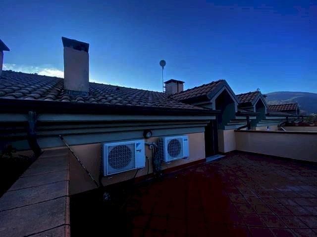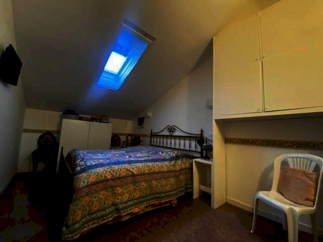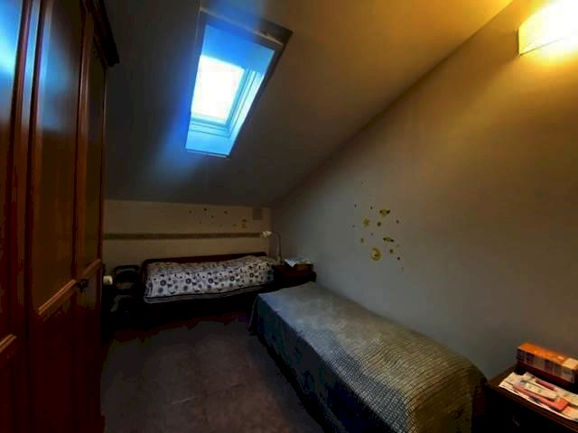 -al secondo ed ultimo piano mansarda con soggiorno, due camere, bagno e bella terrazza con vista.