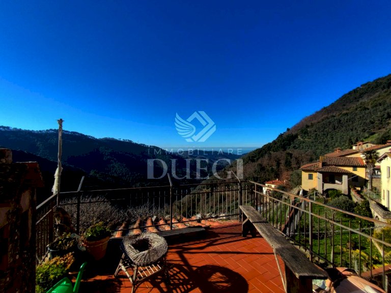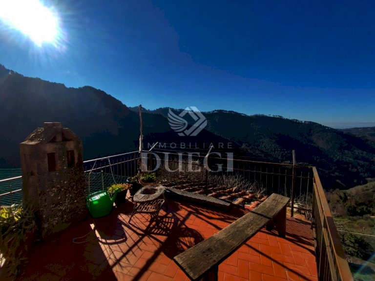 Il fabbricato è una tipica grande casa di paese distribuita su più livelli, ubicata in ottima posizione soleggiata con suggestiva vista mare.
