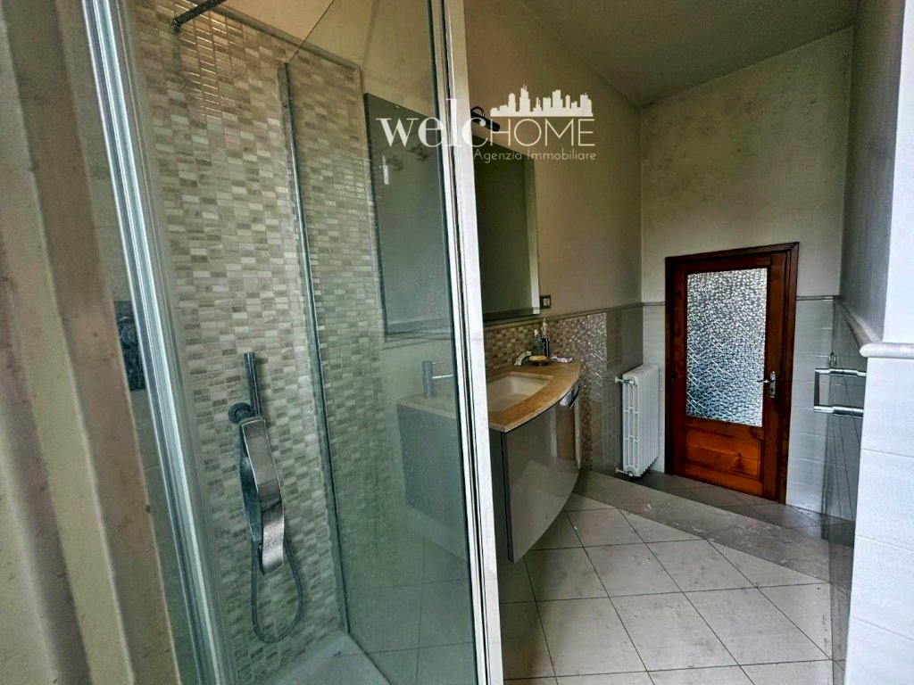 Al piano superiore, un ampio disimpegno distribuisce quattro camere matrimoniali di generose dimensioni e un bagno finestrato con doccia e affaccio sul verde.