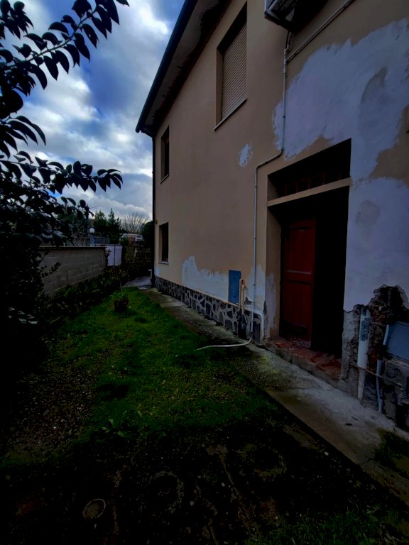 L'immobile ha ingresso indipendente da giardino esclusivo antistante. E' composto da: al piano terra da soggiorno,cucina, cantina e altro locale oltre a ripostiglio sottoscala, il piano primo è composto di appartamento di quattro vani più bagno oltre a terrazzo. E' inoltre presente altro resede per post auto con locale in muratura per garage.