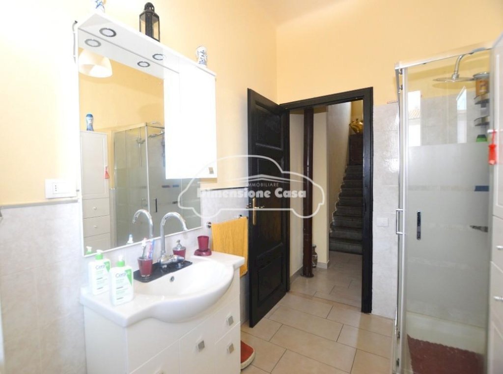 L'abitazione si sviluppa su due livelli più la mansarda abitabile e si compone al piano terra di ingresso, soggiorno, cucina abitabile, sottoscala uso ripostiglio; al piano primo disimpegno, due camere matrimoniali e bagno finestrato con doccia; mansarda divisa in due vani, di cui uno attualmente sfruttato come camera matrimoniale. Sul fronte resede pavimentata esclusiva e fabbricato in muratura composto da vano pluriuso con portico e terrazza coperta e garage con accesso dalla strada.