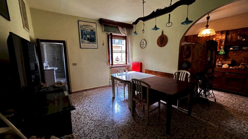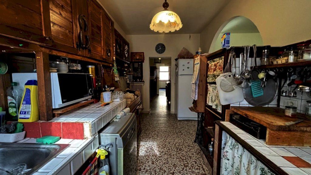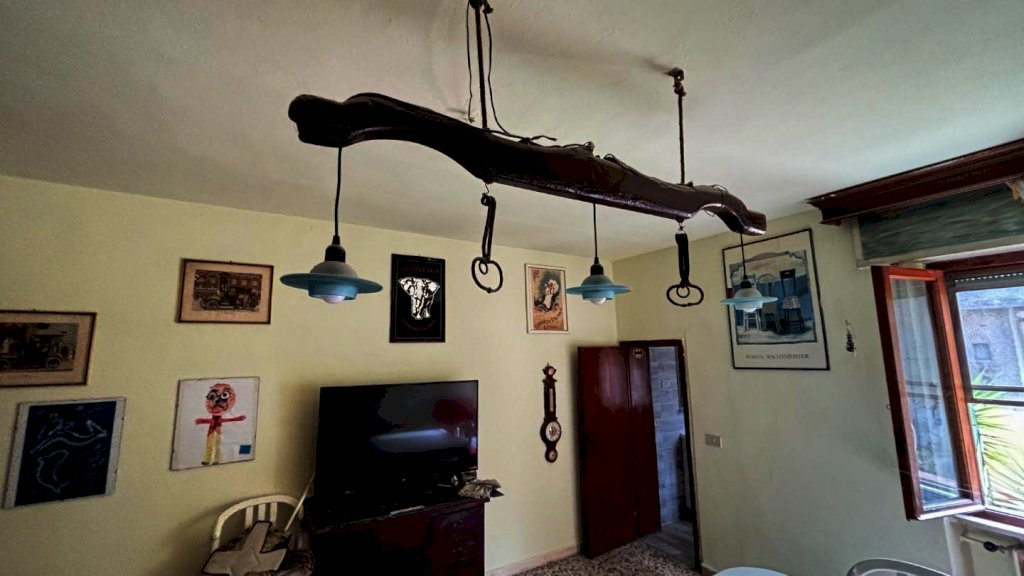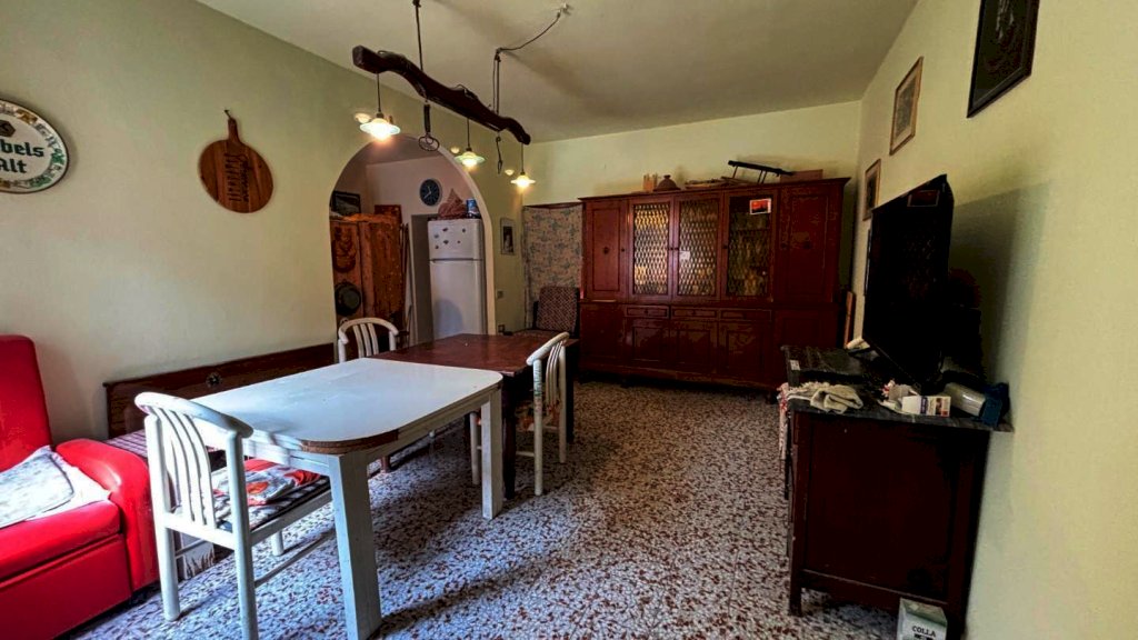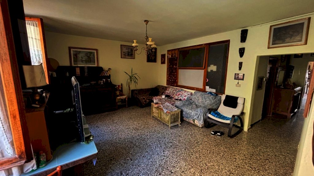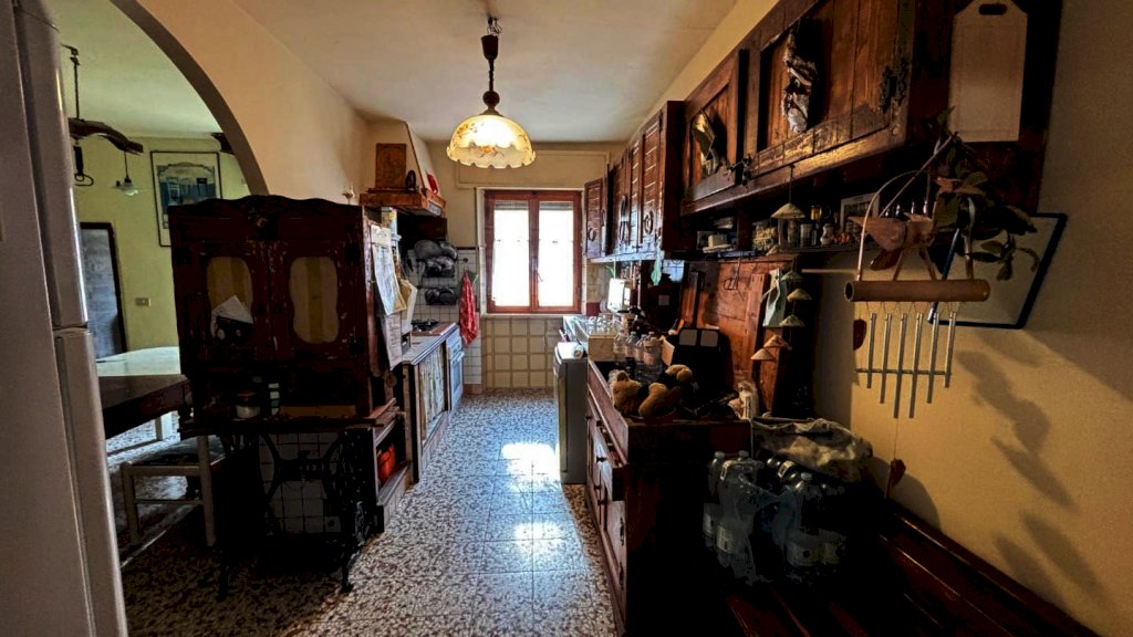 Completa la proprietà tutto il piano terreno della superficie di mq. 80 circa, suddiviso in 2 vani: ampio locale di sgombero-garage e locale taverna con uscita su di una piccola chiostra con w.c.