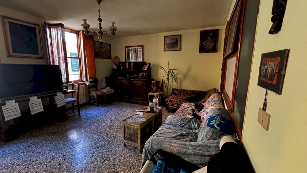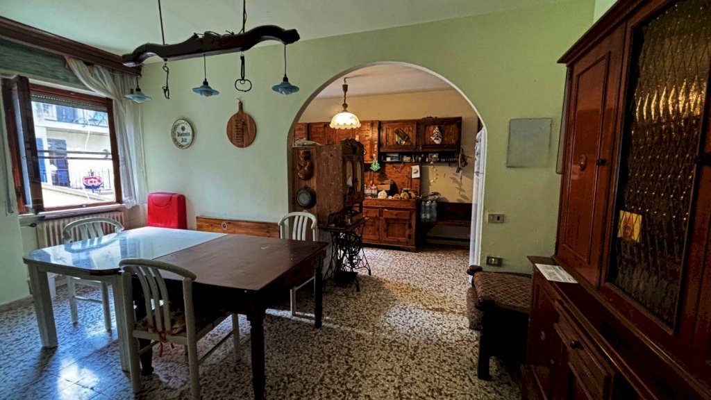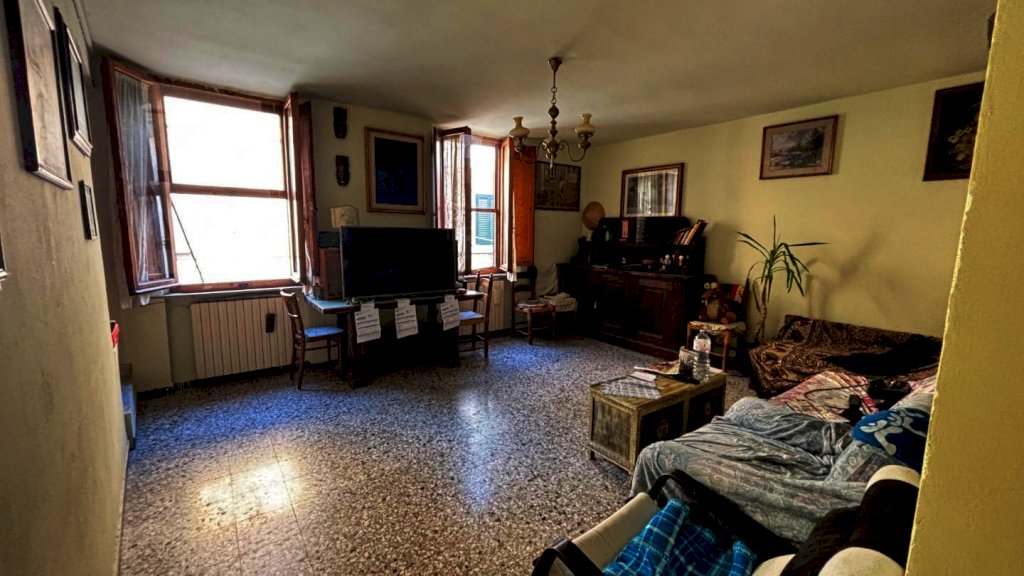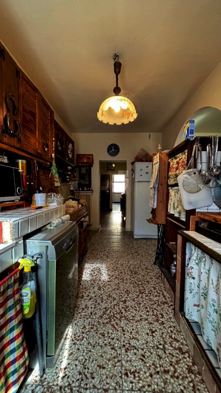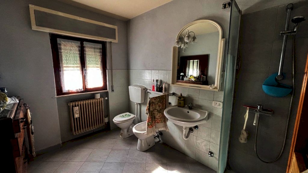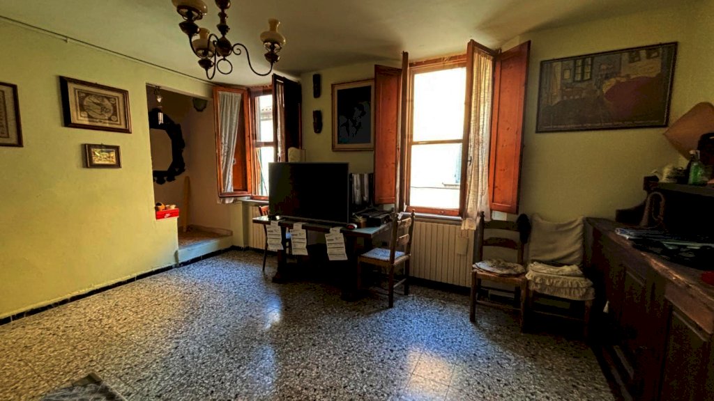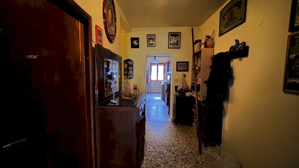 Completa la proprietà tutto il piano terreno della superficie di mq. 80 circa, suddiviso in 2 vani: ampio locale di sgombero-garage e locale taverna con uscita su di una piccola chiostra con w.c.