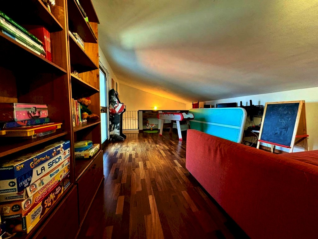 CASCINA - CAG2892 - AMPIO TERRATETTO CON GARAGE, TAVERNA ED AMPIO SOTTOTETTO. Ingresso da scala esterna indipendente in ampio soggiorno con zona cucina ed angolo cottura, terrazza con sovrastante locale tecnico lavanderia, disimpegno notte composto da camera matrimoniale con cabina armadi dedicata, cameretta e bagno con doccia e finestra. Da scala interna in ferro e legno si accede all'ampio sottotetto composto da ulteriore zona living/spazio conviviale, tre vani utilizzabili come camere e locale tecnico/lavanderia. Dal soggiorno tramite il vano scale interno, raggiungiamo il piano terreno, composto da ampia taverna di circa 30mq con camino avente accesso anche dall'esterno ed il garage di c.a. 32mq. L'immobile รจ stato ristrutturato a partire dal 1991 con successivo intervento per la realizzazione della scala interna. L'ideale per avere ampi spazi, da dedicare ai propri figli o per chi necessita di soluzione casa lavoro visto i due ampi vani per un totale di c.a 60 mq al piano terreno.