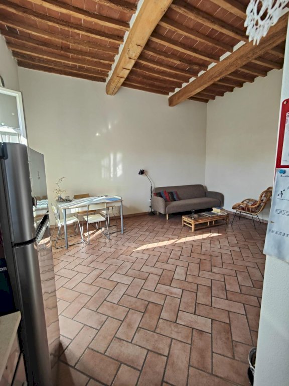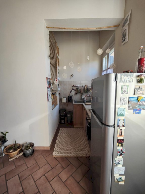 Pisa. Casciavola. NOSTRA ESCLUSIVA!! In fabbricato completamente ristrutturato nel 2005, vendesi terratetto con ingresso indipendente. Si accede al complesso attraverso cancello carrabile automatizzato che ci accoglie nell'ampia resede condominiale, dove insistono i due posti auto ad uso condominiale. Un delizioso giardinetto accompagna e filtra l'ingresso indipendente al terratetto, con portoncino privato blindato. L'appartamento si sviluppa al piano primo, servito da una scala in pietra, ed è composto da ampio soggiorno con angolo cottura separato, esposto a sud con luce naturale continua, il corridoio finestrato che separa l'area giorno dalla zona notte con camera matrimoniale, camera media e bagno con doccia e finestra. Valore aggiunto è la mansarda di proprietà che sovrasta l'intero appartamento, (con accesso da botola con scala retrattile). La mansarda è lasciata al grezzo e finestrata con facilità di collegamento al corpo principale per chi desiderasse ampliare gli spazi. Riscaldamento autonomo, finestre in legno e doppi vetri. L'immobile è unico nel suo genere e si presenta pari al nuovo, in stile rustico ed elegante, grazie alle rifiniture scelte ed al recupero delle volte sabbiate nella zona notte, (dove troviamo il parquet) e travi e travicelli nella zona giorno. Completa l'offerta, oltre ai posti auto, deliziosa cantina a piano terra di circa 9 metri, con accesso dall'androne condominiale. Immobile conforme sia catastalmente che urbanisticamente.(accertamenti già effettuati da un tecnico) Ottima soluzione per giovani coppie e per chi desidera un immobile indipendente, con la comodità della posizione e della facilità di parcheggio.