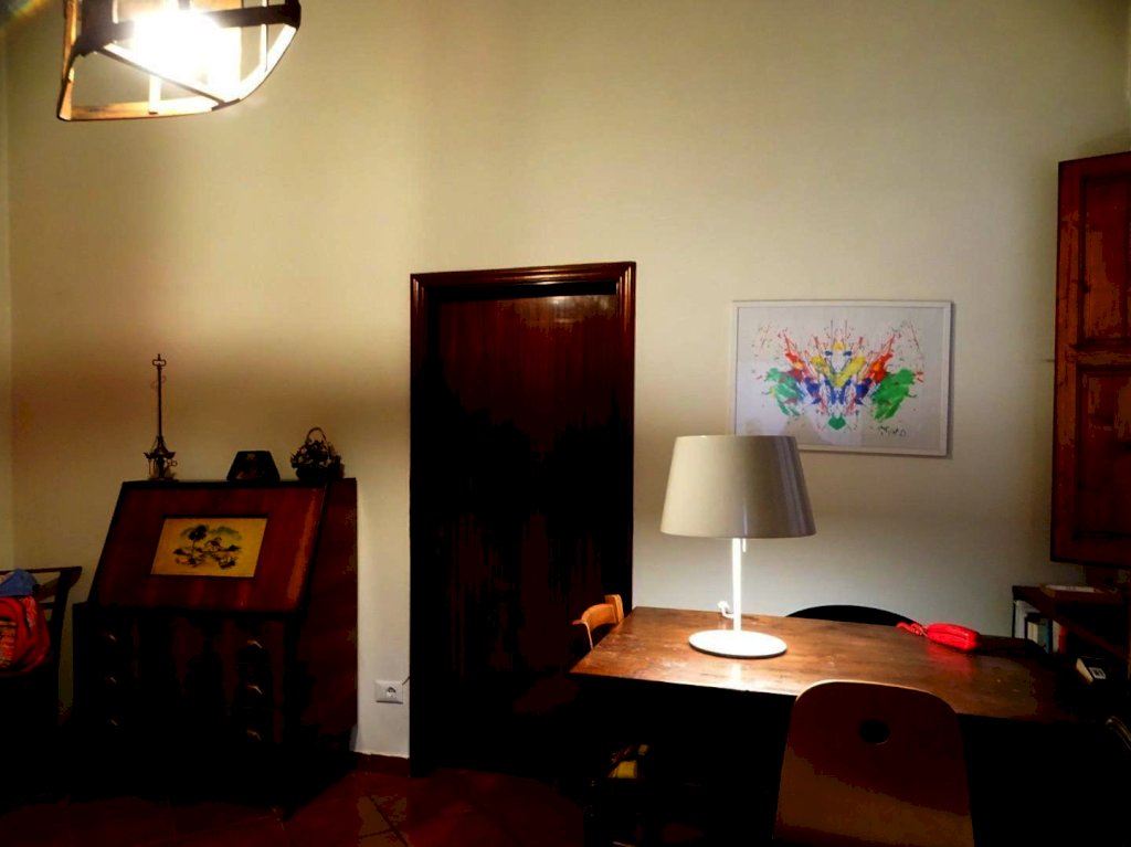 L’ingresso dell’abitazione da accesso, oltre che al vano scale che conduce al piano superiore, ad uno studiolo privato (attrezzato anche con angolo cottura), ad un locale ripostiglio/lavanderia, ad un bagno di servizio e al garage.