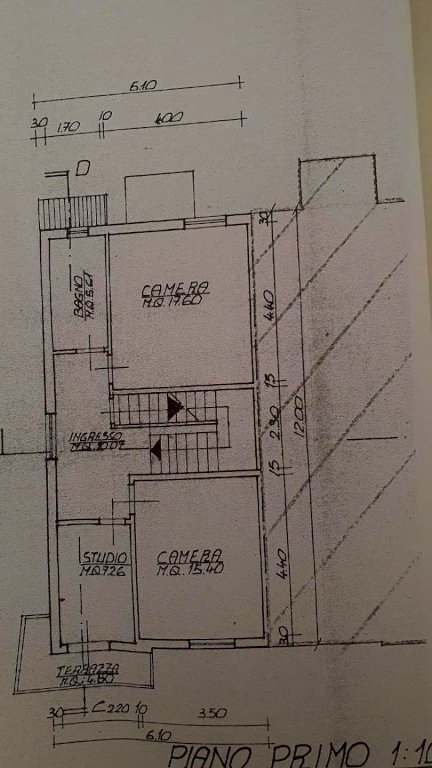 Proponiamo terratetto di ca mq. 180 su tre livelli , in strada defilata vicino ai servizi . Gli spazi sono così distribuiti: ingresso da resede di proprietà , ingresso , salone , cucina con zona pranzo e affaccio su bel resede tergale di mq. 150 , scala che porta al Piano PRIMO con due ampie camere matrimoniali , cameretta con balcone angolare, servizio finestrato, scala che porta al vano soffitta dove ci sono due locali finestrati e un ripostiglio.