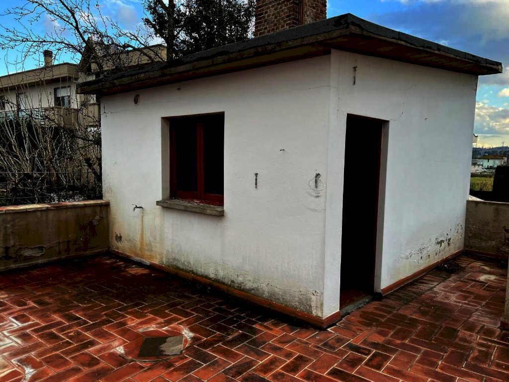 Santa Maria A Ripa - Empoli in zona residenziale, in una strada transitata solamente dai residenti, vicino al centro commerciale ed alla uscita FIPILI, terratetto indipendente libero su tre latri da ristrutturare con grandi potenzialita' . L' unita' immbiliare a cui si accede dal cancello carrabile ed uno pedonale, che permettono al' accesso ad ampio giardino di circa mq. 400, in parte resede in pietra, in parte erboso, è composta al piano terra da porticato e locali garage e locali accessori uso sgombero di circa 260 mq, e da ingresso e vano scale che permette di arrivare al piano primo dove troviamo un luminoso soggiorno con balcone, e accesso ad una grande terrazza di circa mq. 40, disimpegno, camera matrimoniale, altra camera matrimoniale, bagno . Dalla terrazza citata si accede a mezzo di una scala esterna ad un ampio locale sottotetto mansardato a grezzo, ed anche al giardino, sempre mediante una scala esterna.