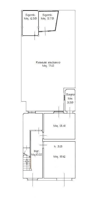 Il terratetto è disposto su due livelli ed è composta al piano terra da ingresso nel soggiorno, cucina, bagno e accesso al giardino tergale di circa 75 mq oltre a due locali di deposito;
