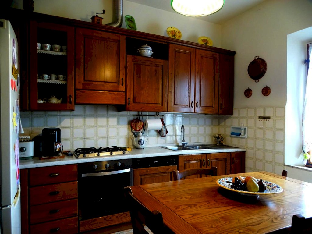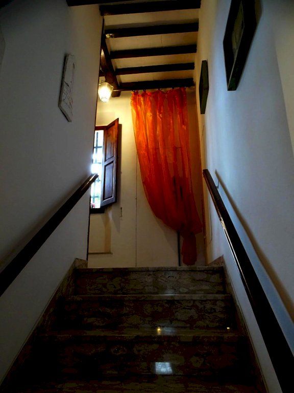 Salendo le scale, al mezzanino, si accede ad un terrazzo in parte coperto. Al primo piano un disimpegno collega le stanze dell’appartamento: il soggiorno, la sala da pranzo, la cucina, le due camere da letto, il bagno dal quale si entra in un piccolo ripostiglio. L’abitazione dispone anche di una soffitta in parte praticabile.