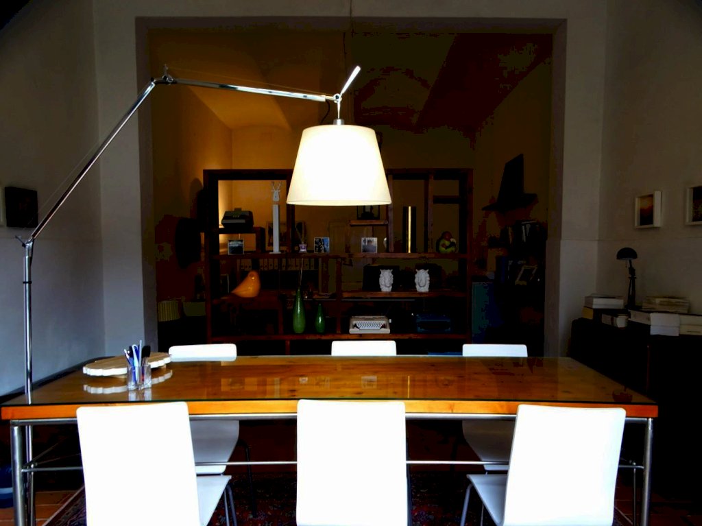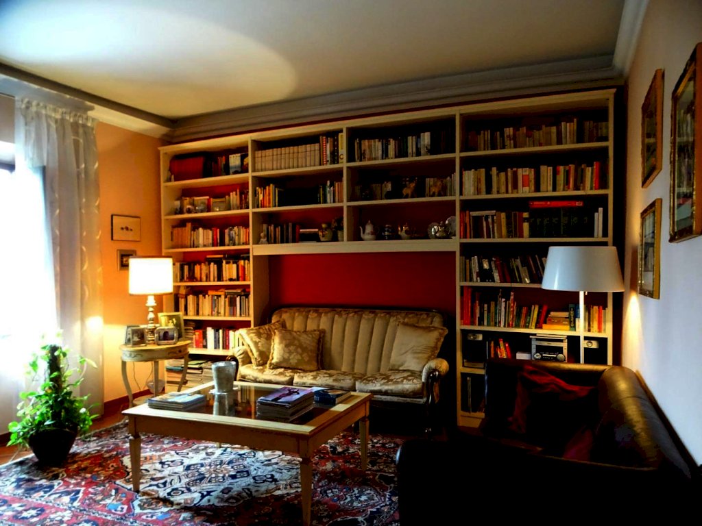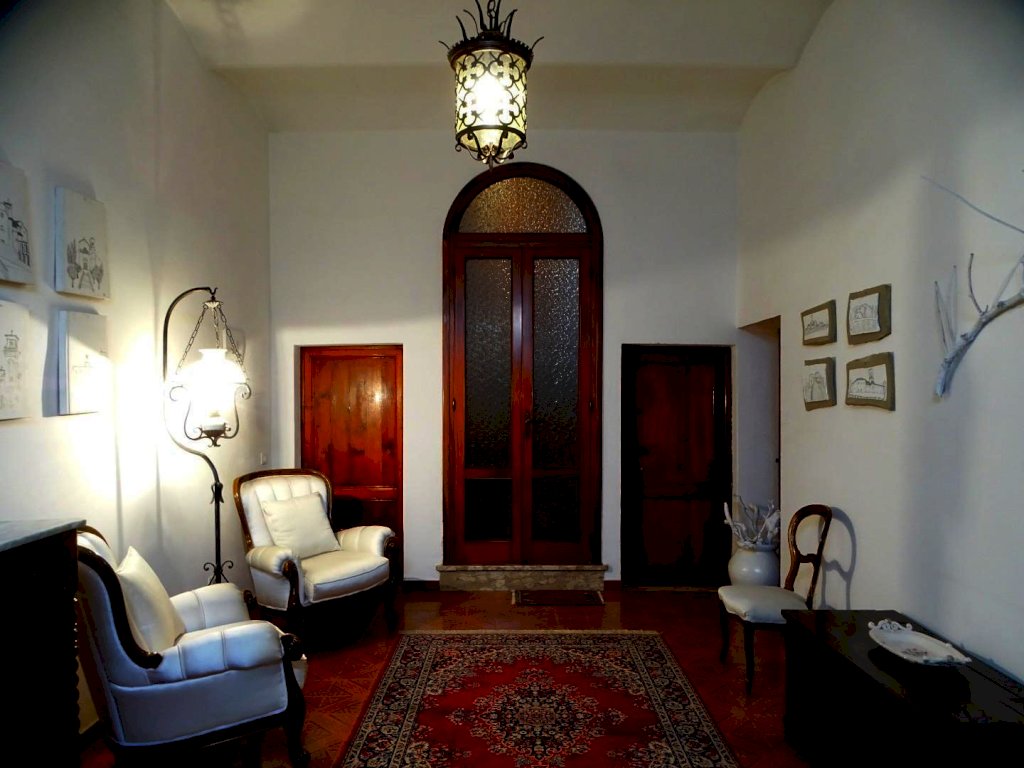 L’ingresso dell’abitazione da accesso, oltre che al vano scale che conduce al piano superiore, ad uno studiolo privato (attrezzato anche con angolo cottura), ad un locale ripostiglio/lavanderia, ad un bagno di servizio e al garage.