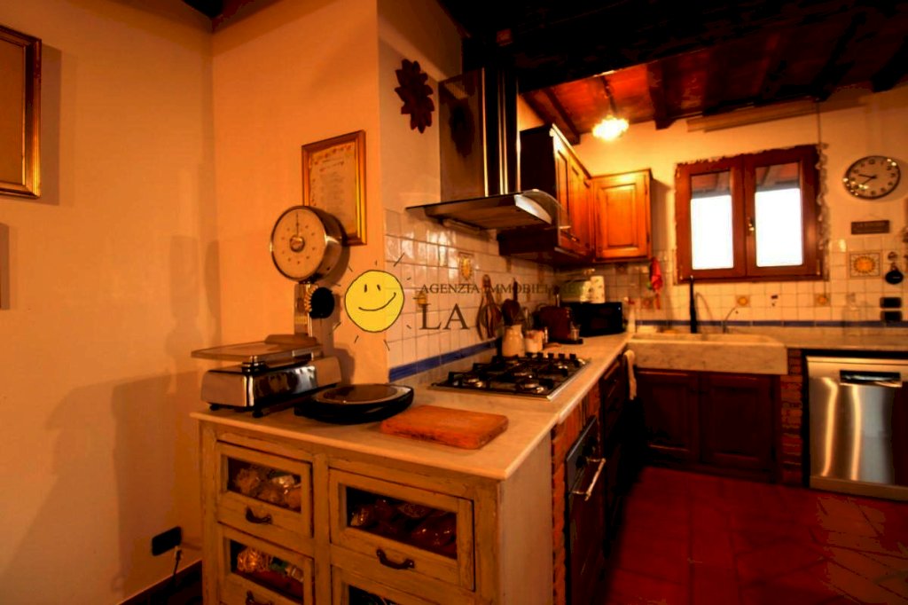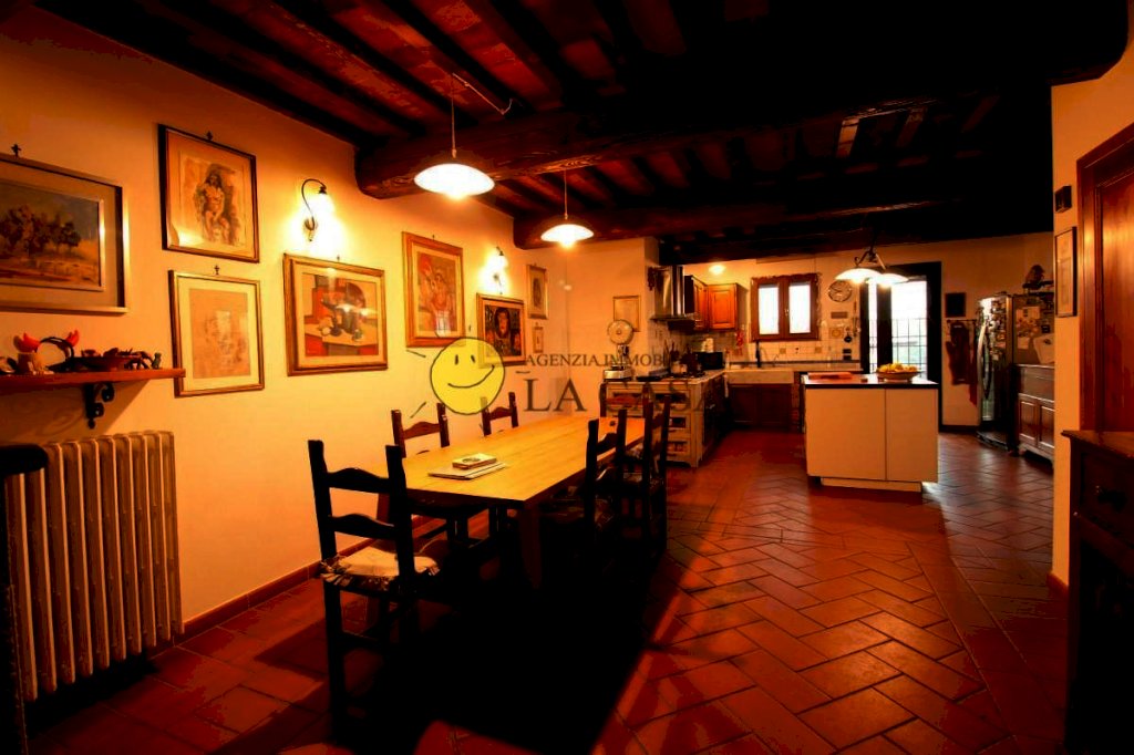 PALAZZOLO (6 km San Donato in Collina) - 2 UNITA' ABITATIVE - Interessante terra-tetto 250 mq complessivi con resede privato di circa 350 mq. Trattasi di 2 appartamenti distinti; al piano terra grande appartamento di tipologia colonica di recente ristrutturazione e caratterizzato da cotto e travi a vista avente doppio soggiorno con angolo cottura, 2 camere, 3 bagni, oltre a stanza di passo con scala di collegamento al piano seminterrato, al piano primo l'altro piccolo appartamento di 3 vani da rimodernare oltre bagno e con terrazzo di 45 mq. i due appartamenti hanno una superficie complessiva di circa 180 mq. Al piano seminterrato di circa 70 mq troviamo il garage, cantina e locale tecnico con caldaia.