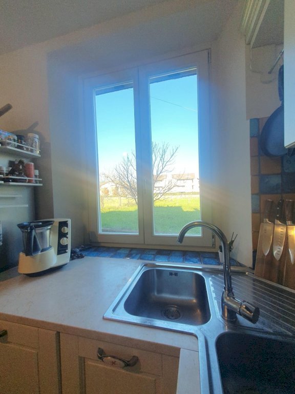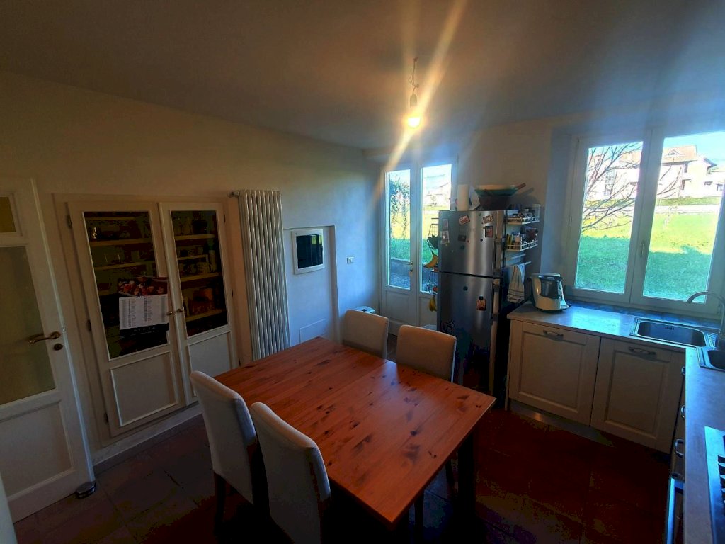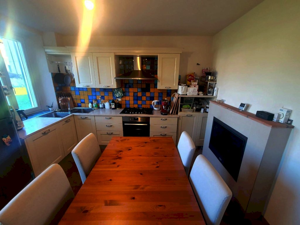 L'abitazione gode di una bella luminosità grazie all'ottima esposizione a sud. Si compone al piano terra da un'ampia resede sul fronte, ingresso, un bel soggiorno accogliente, il disimpegno per accedere alla cucina abitabile dotata di camino a legna chiuso dalla quale si accede alla seconda resede sul retro e al terreno di proprietà esclusiva.