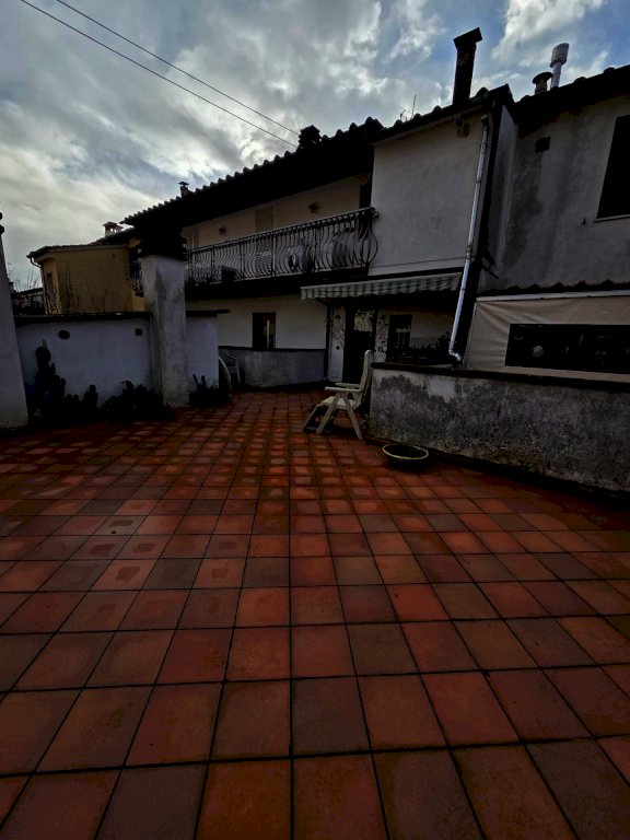 Santa Maria a Colle (Lucca) - Terratetto centrale di circa 180 mq composto da: prima parte da studio o camera con balcone, un bagno con vasca e corridoio con accesso alla terrazza esterna di circa 25 mq. Al piano superiore abbiamo: cucina abitabile, sala da pranzo e soggiorno con camino a vista e acceso al balcone e ripostiglio esterno locale caldaia, una camera matrimoniale, due camere singole e un bagno con doccia. A corredo capanna con bagno, piccolo giardino di 15 mq e taverna composta da due vani con camino e forno a legna e cucinotto e bagno con doccia oltre a resede pavimentata privata sul laterale, ideale anche per crearci un piccolo mini appartamento da mettere a reddito o per chi volesse vivere con i genitori o figli indipendenti. Ampio parcheggio fronte casa a comune per tanti posti auto. Immobile ristrutturato nel 1995 con pavimenti in cotto e in parquet nella zona notte, infissi in doppio vetro di alluminio e aria condizionata. Immobile subito abitabile e in posizione tranquilla di periferia. Ottimo affare!!!