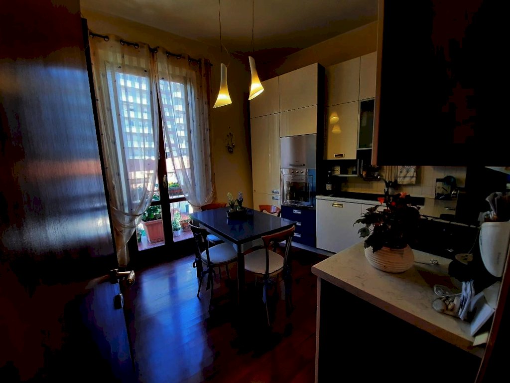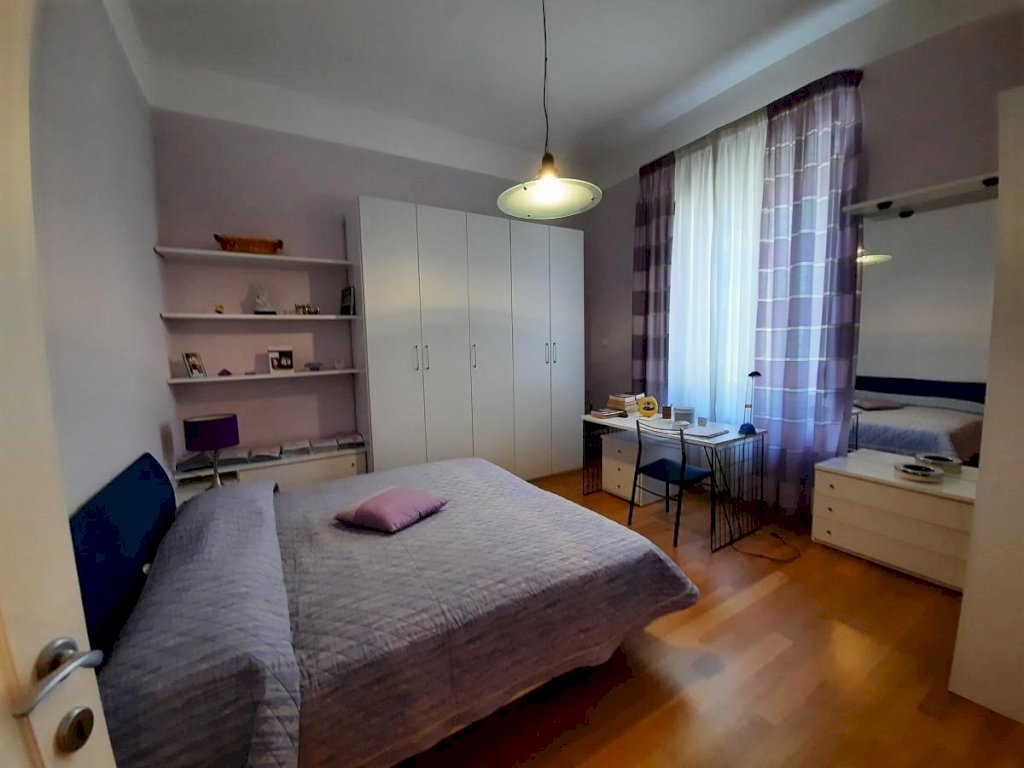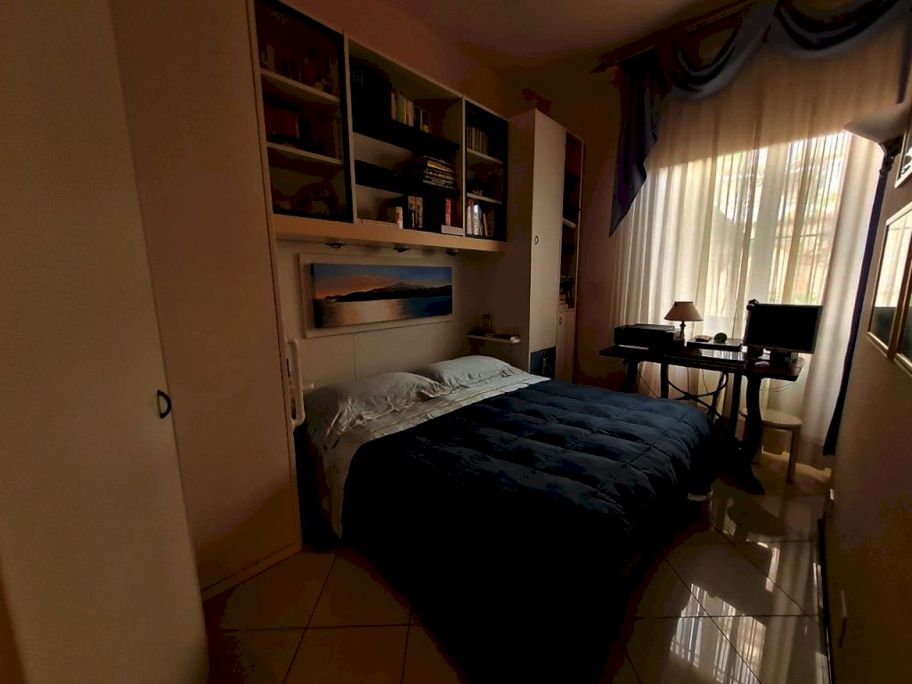 - Appartamento al piano primo, di mq. 102 lordi, composto da ingresso, cucina pranzabile con balcone (il mobilio della cucina rimane), soggiorno con balcone, due grandi camere matrimoniali, piccolo ripostiglio sul balcone della cucina, bagno con doccia e finestra.